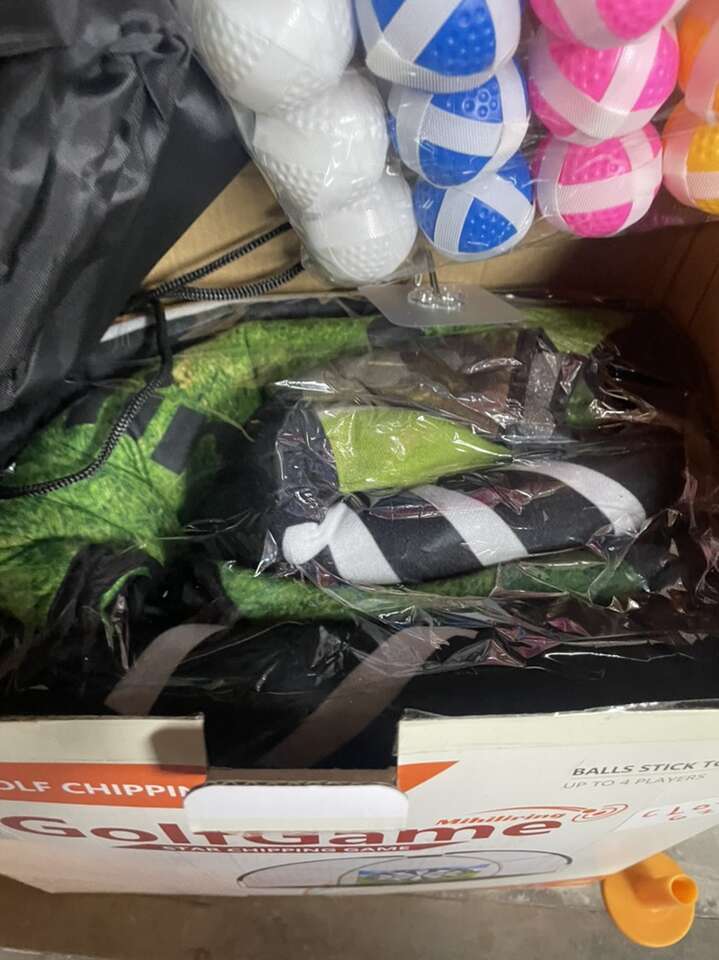 All new, still in the wrap. Golf game. Includes net & balls. Balls and target on the net are hook and loop Velcro. Cool activity for backyard bbq or game night.