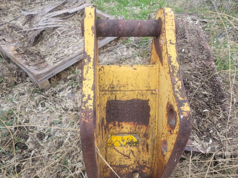 JD 1 foot bucket. Top pin about 2 1/8". Bottom pin about 1 15/16. Has JD 310 welded on back. Call Alan. No text. 801-420-4620