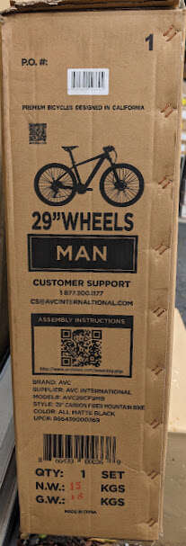 Box dimensions 57 inches by 30 inches by 9 inches, Weight 40Lbs Gross
