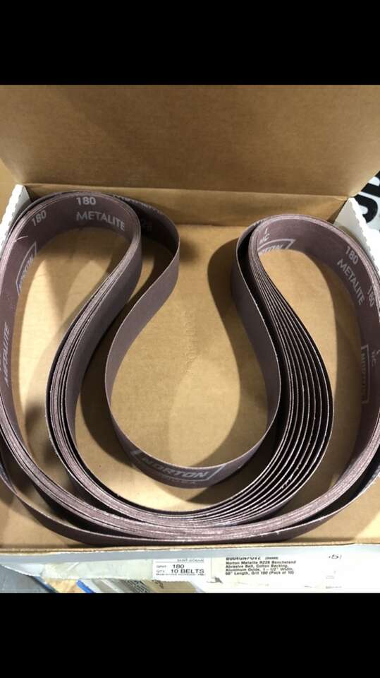 Knife maker, blacksmithing industrial hobbyist Norton 1 1/2”x 60” By 180 grit sanding belts 10 per box $20 a box look at all pictures discount for buying multiple boxes 801-391-7735