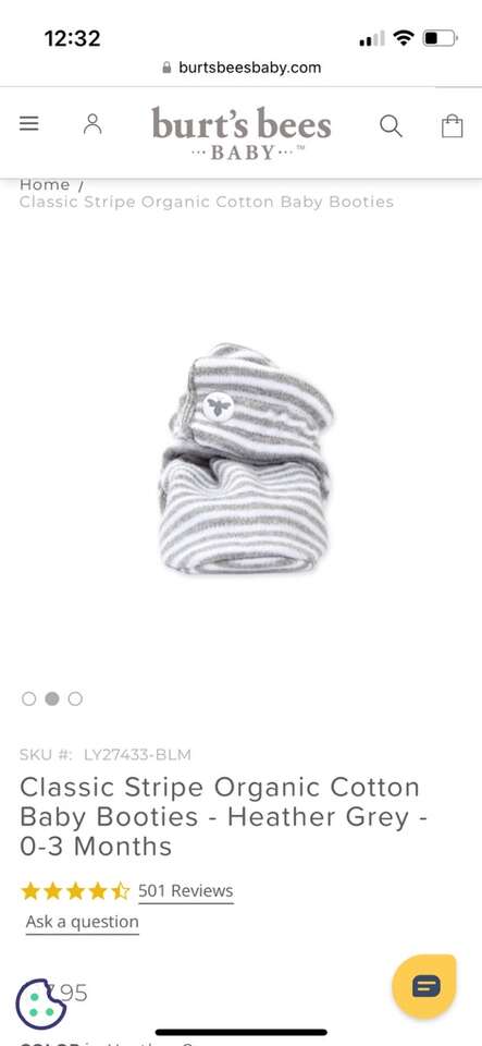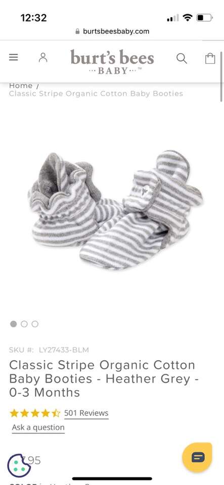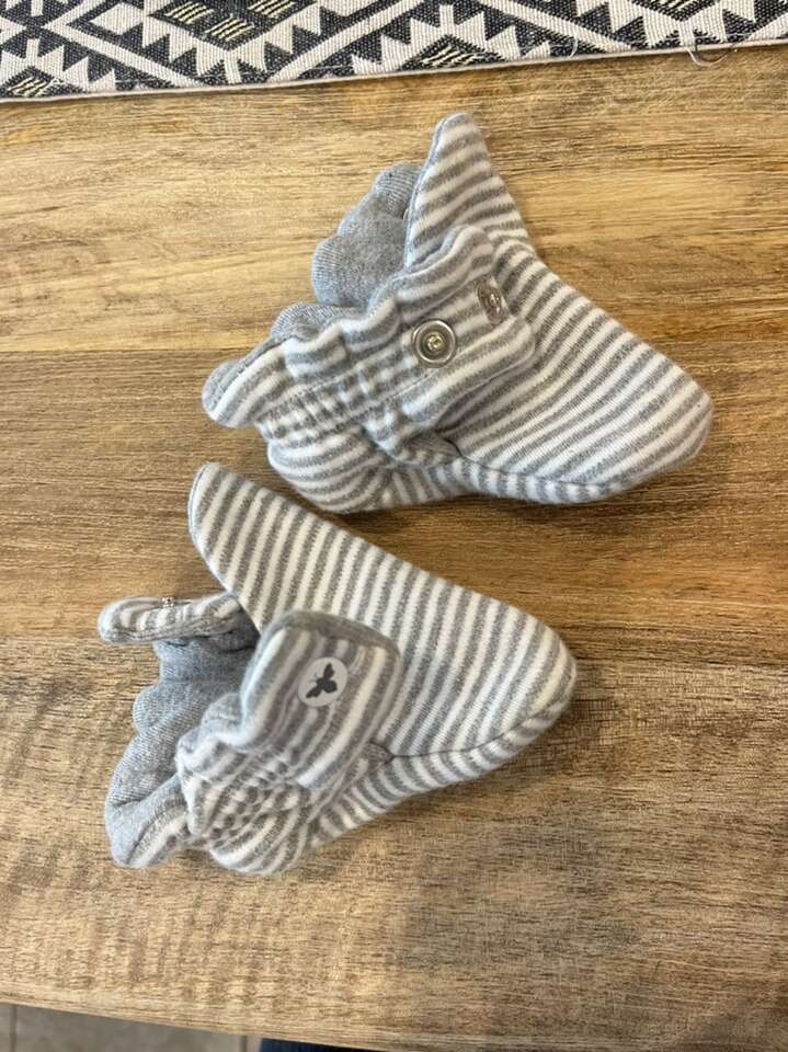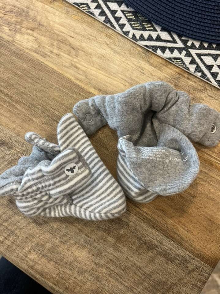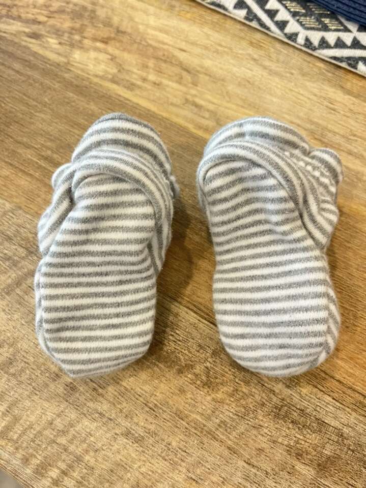 Classic Stripe Organic Cotton Baby Booties - Heather Grey - 0-3 Months. Perfect condition!