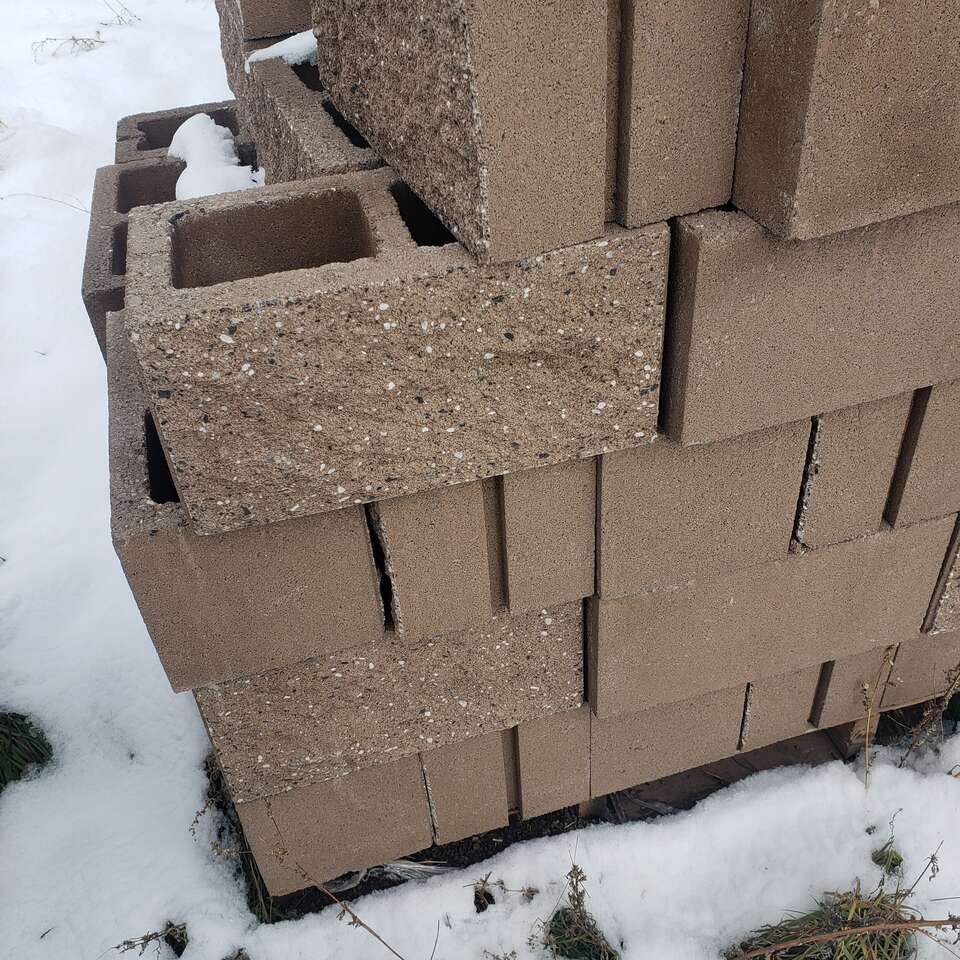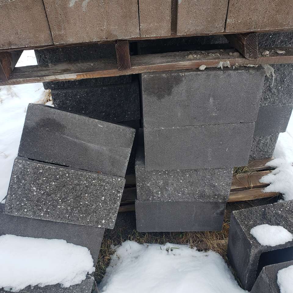 New block lots to chose from, $ 2.00 each, Split face block, $ 2.50 each, 30 plallets or more. New brick, 50 plus pallets. $ .25 each