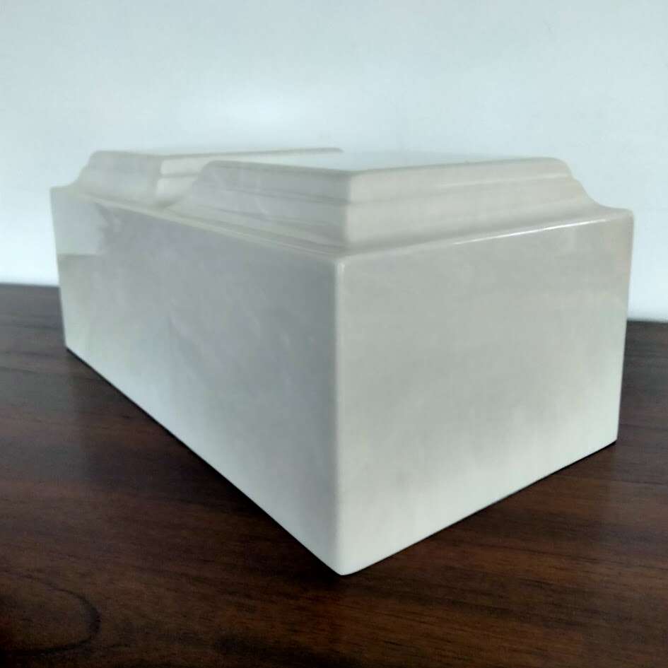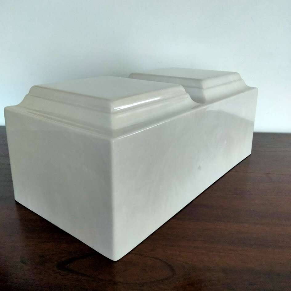 This urn helps support grieving families at their time of need. Choose its unique personality with vivid color or calm earth tones. An expression of muted authority, they can reflect the lifestyle of an individual with a personalized engraving. Etch the name, dates, artwork and poetry that spark memories and tell a story. The MacKenzie Companion Urn is made of hand-sculpted cultured marble. While the contents are protected, care should be taken when handling. Protect the finish from scratches or dents. The urn doesn’t break open if dropped, also doesn’t splinter or shatter. But it will dent and scratch with enough force.