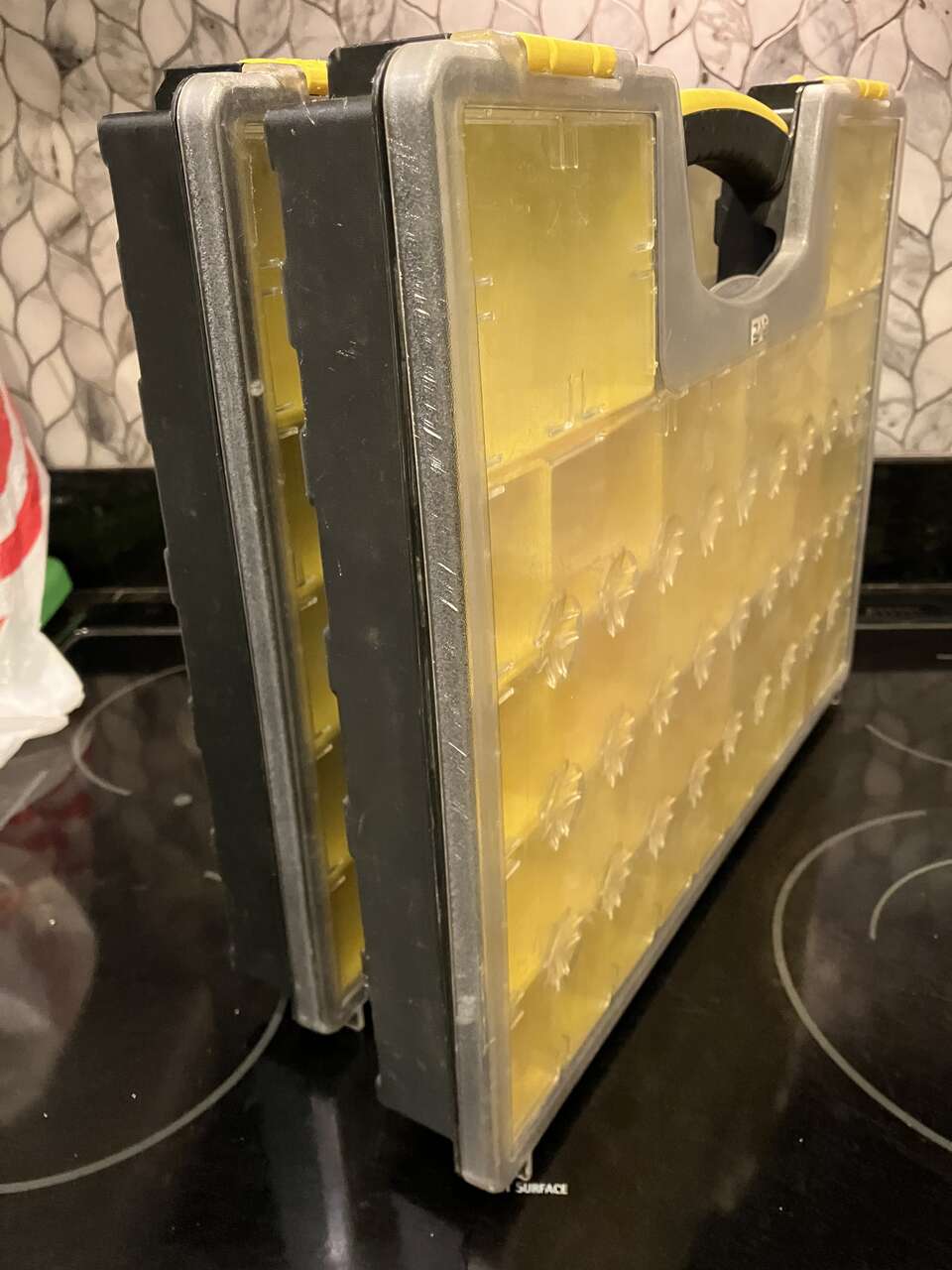 VenmoTWO PORTABLE, HEAVY DUTY STORAGE CASES: Secure Locks, see-thru lid and 25 Removable Compartments. Lid has secure compartment dividers so you can arrange the removable compartments in any arrangement. Great for Hardware, Screws, Bolts, Jewelry, Sewing Notions, and other Craft Projects, etc. See all 3 photos. Made by ZAG. 16.5 Inches x 13 inches by 2 inches deep. Retails $30 each. Only $15 each OR BUY BOTH FOR $20 TOTAL. Cash/Venmo. In Sandy. 801-201-5350