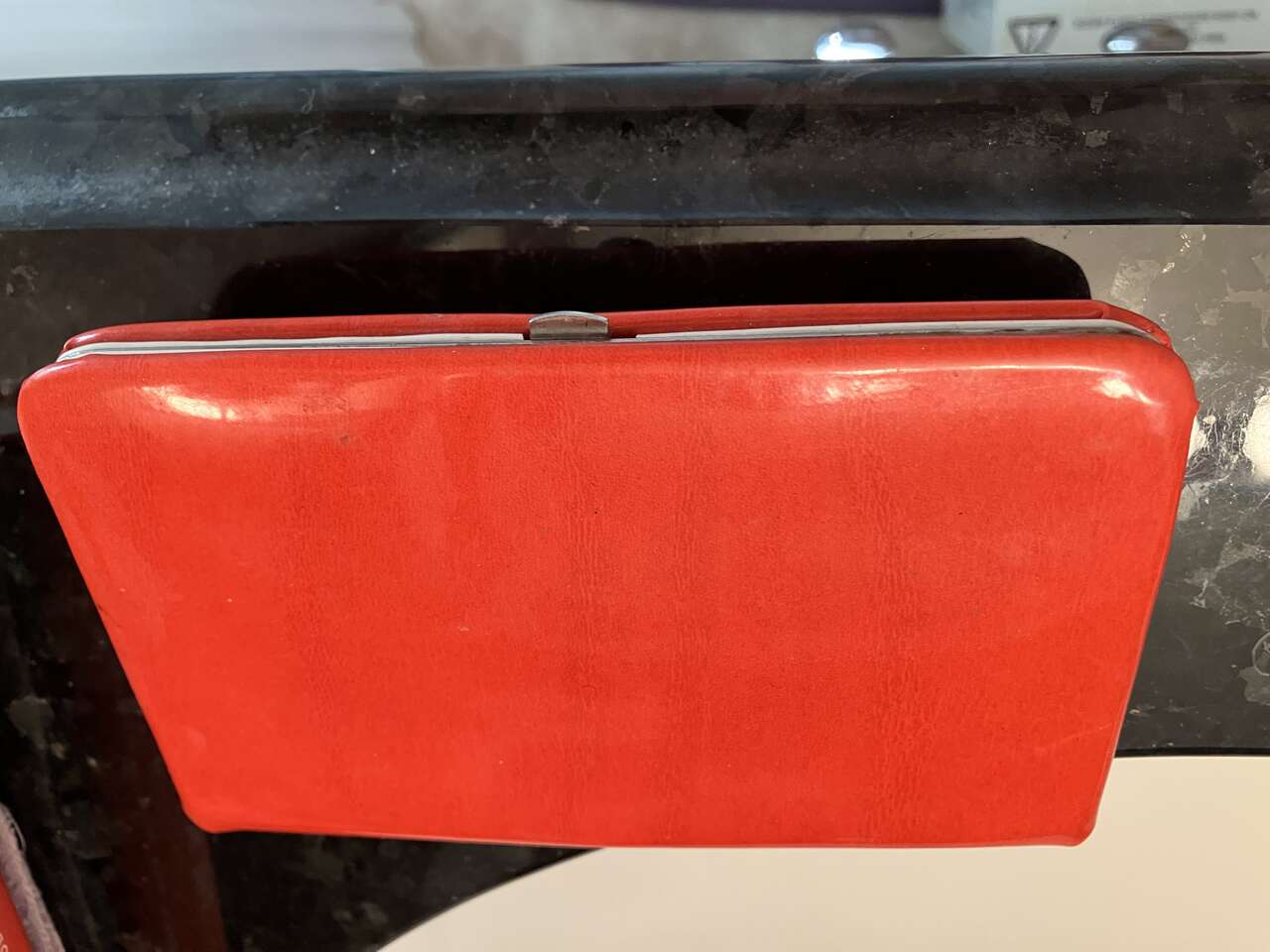 VenmoVINTAGE 1960'S NAIL CARE KIT IN ORANGE VINYL. In beautiful condition. 3.5 inches x 5.5 inches Closed. Snap Closure. Made in West Germany. 7 instruments (tweezers, cuticle scissors, etc) $5 Cash/Venmo. In Sandy. 801-201-5350