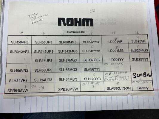 I HAVE A SAMPLE CASE OF LED'S FOR SALE ALL ARE NEW PARTS. THE TOTAL COUNTS OF THE COMPONENTS IS AT 182 ( RECENTLY FOUND AND INCORPORATED SOME MORE COMPONENTS) ( THERE ARE CHIP TYPE WITH WITH 8 SEPERATE LED'S IN A CHIP) THERE IS AN LED TESTER. ASKING $40.00 IF INTERESTED CALL OR TEXT ROY AT 385-259-9933