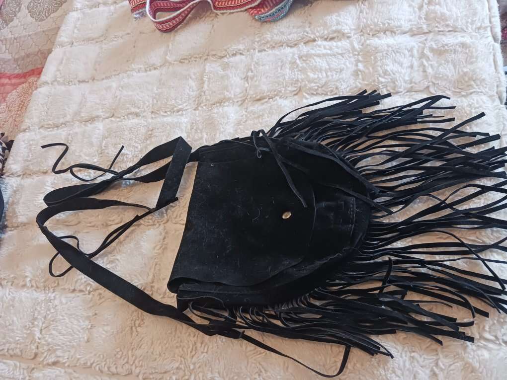 Purse is 8 inches by 9 inches with six inch fringe. Used one time.