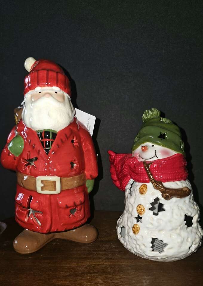 2 cute, shiny, enduring, Vintage Santa Claus & Frosty Snowman tea candle lights.