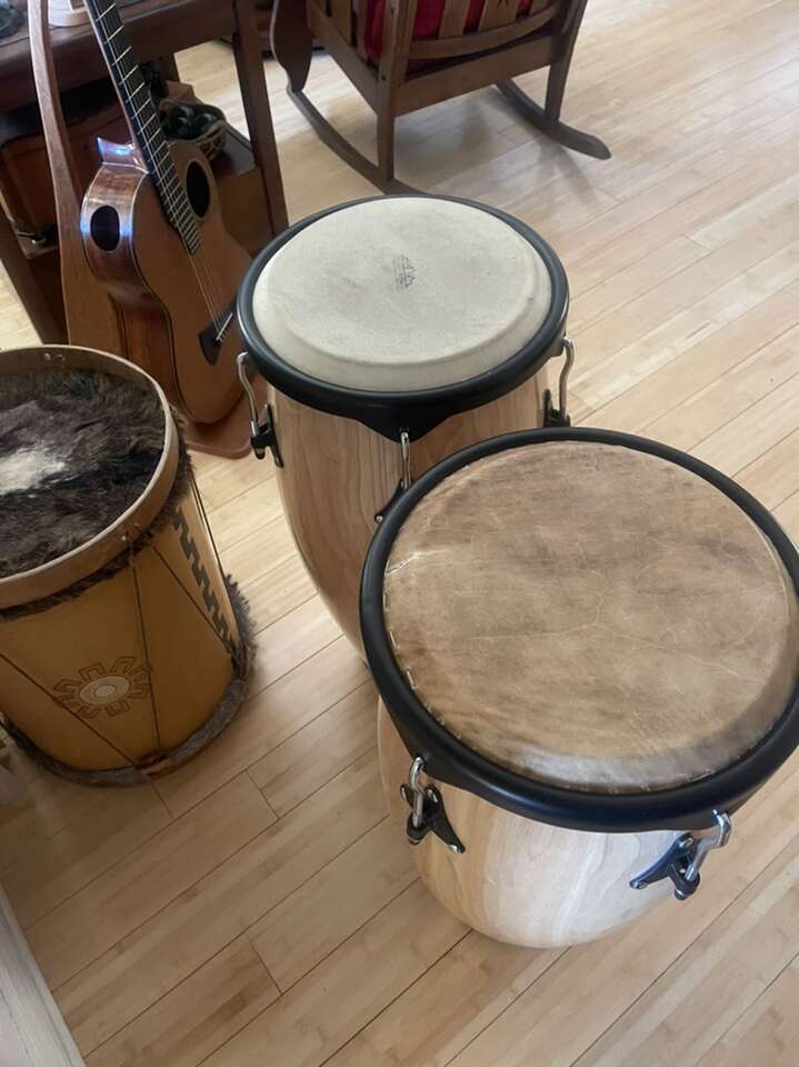 Used conga drums great sound and feel. The bass drum has a very small tear on the drumhead it does not affect the playability.