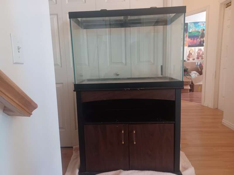 70 gallon breeder tank comes with tank stand and lid and light bar. There is a chip in the corner of one of the lids. Tank dimensions are, length 36 in. width 18 in. height 25 in.