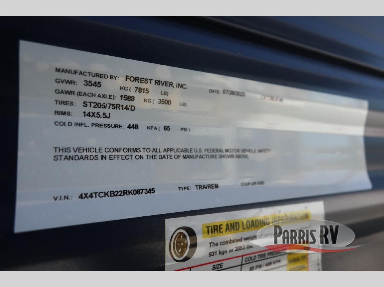 You and your spouse will have a fun time camping in this travel trailer! You will find all of the comforts you need with plenty of livable space including a U-shaped dinette slide. There is also a sofa for more seating when company arrives with a shelf above for your books. The spacious full rear bathroom has a shower with a skylight for more head room and natural lighting. You will find ample storage for clothing in the wardrobes that are above handy nightstands for your personal things on either side of the queen bed in the front private bedroom. There is even an outside mini kitchen and outside TV mount all protected by the 15' awning!
