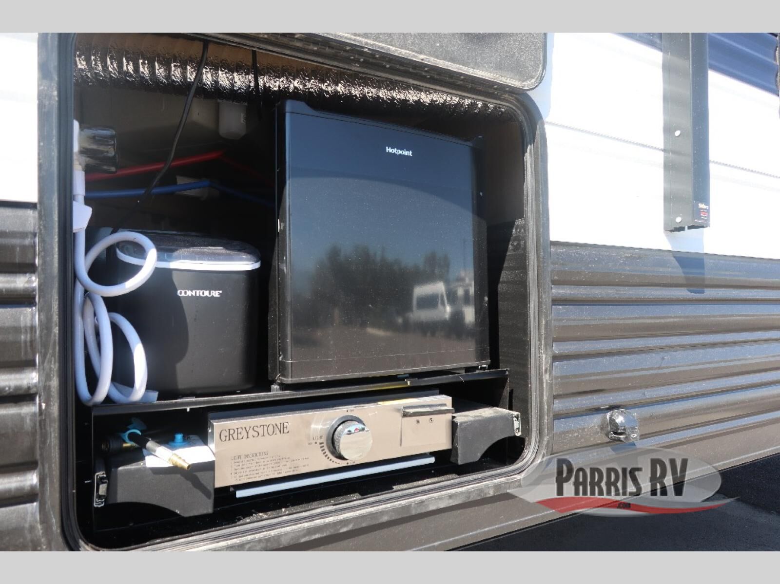 Whether it's a journey that will take you to new locations or a tried-and-true getaway to that favorite and memorable destination, the Forest River Cherokee Grey Wolf travel trailers and toy haulers are going to make the trip worth it every single time! You can travel in confidence with the premium wheel package, seamless roofing membrane with heat reflectivity, Power Gear frame technology with space-saver rail design, and Cherokee back-up camera system. The Cherokee Grey Wolf's interior is highly attractive with its stainless steel kitchen suite package, premium bedding ensemble and comforter, and 8" ceiling-mounted subwoofer with accent lighting. You will also find a black waste tank flush-out kit, an outside shower with hot and cold water, an armored underbelly tank enclosure, a power tongue jack, and an RV grill quick connect.