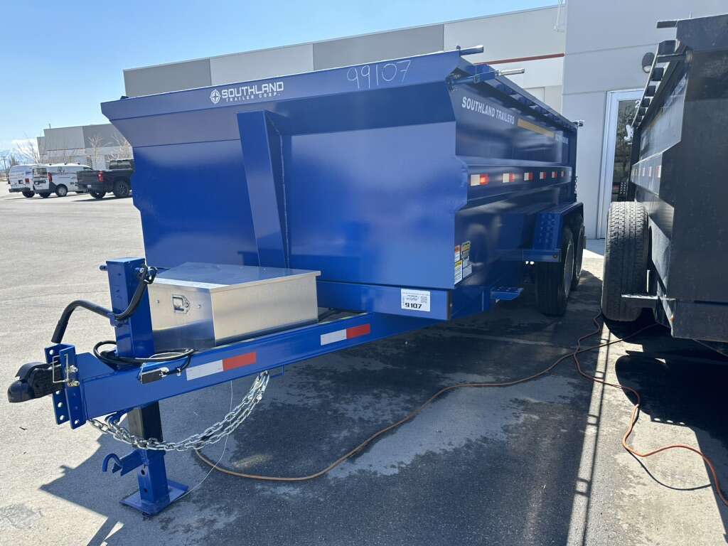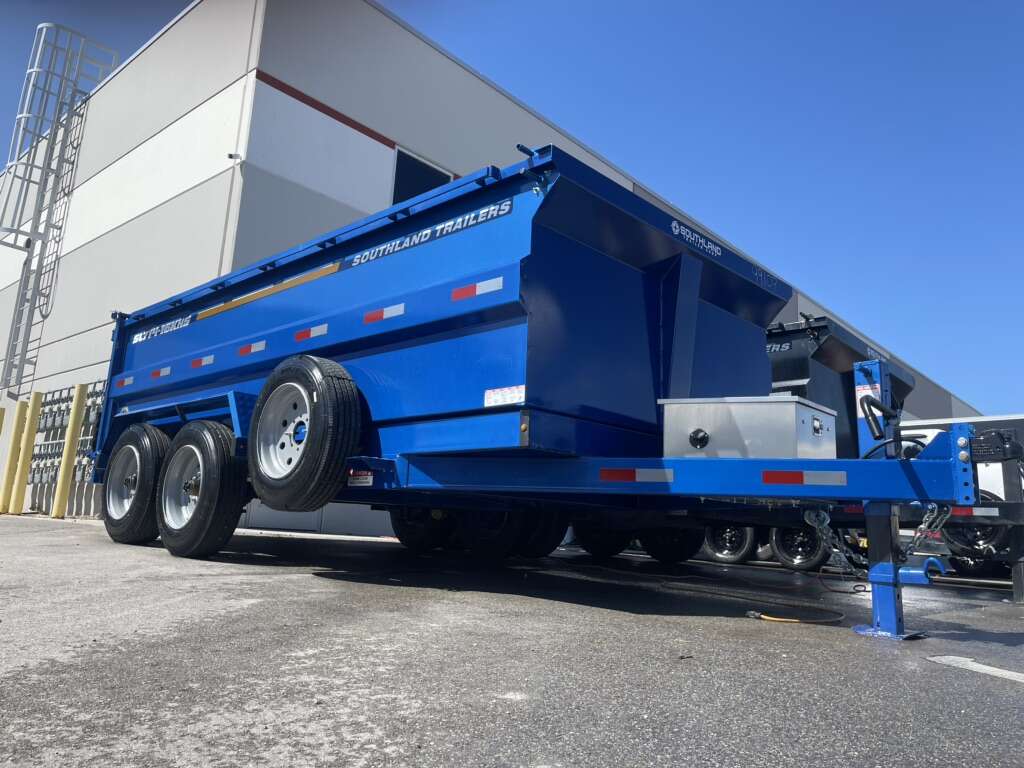 Our dump trailers are 14’ to 16’ x 7’ with 3’ or 4’ side walls, full power tilt, retractable tarp, load stabilization, ramps and adjustable heavy duty hitch.