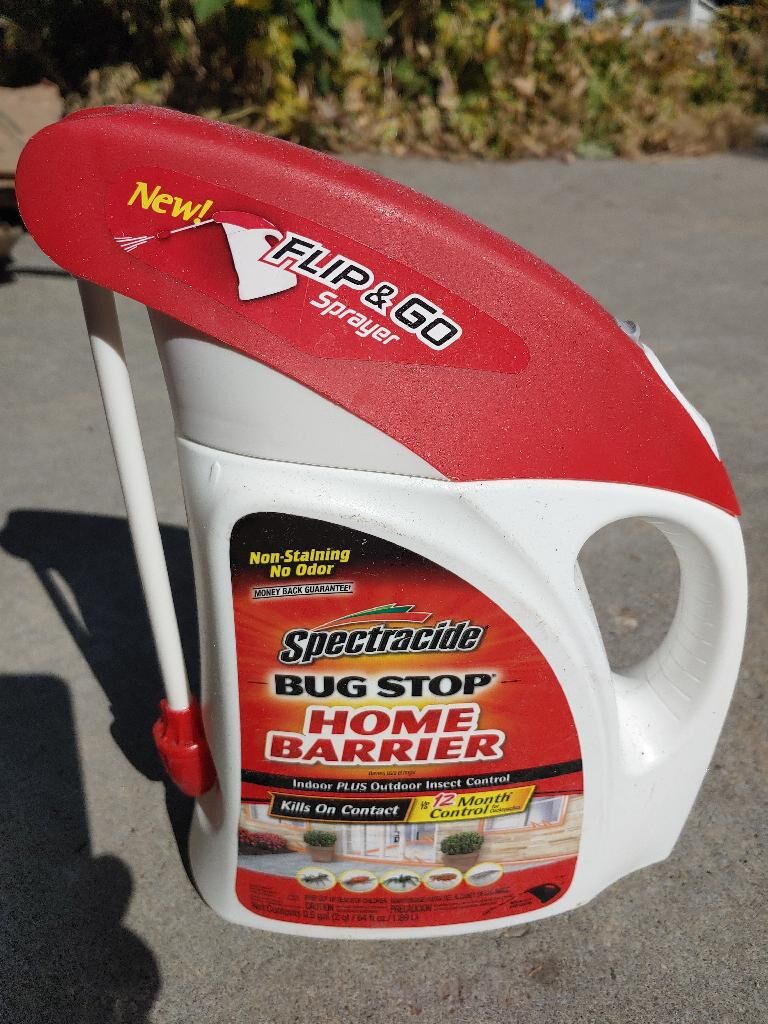 Spectracide Bug Stop Home Barrier insect repellent, 0.5 gallon / 2 quarts / 64 fluid ounces / 1.89 liters, with Flip Go sprayer, for controlling insects indoors and outdoors.