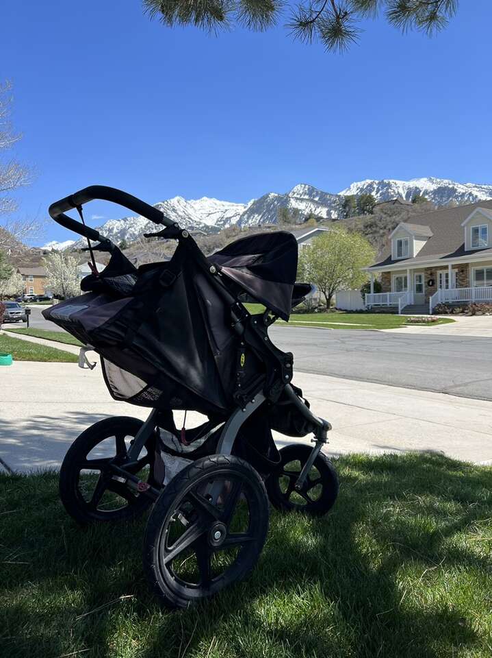 Grey that has sun fade. Rolls great. Been on about 20 miles of trails and sat in garage for three years. Tires good tread. Has some trouble folding so not very portable. Works best in pickup truck or large SUV. Pickup in Sandy. Text anytime