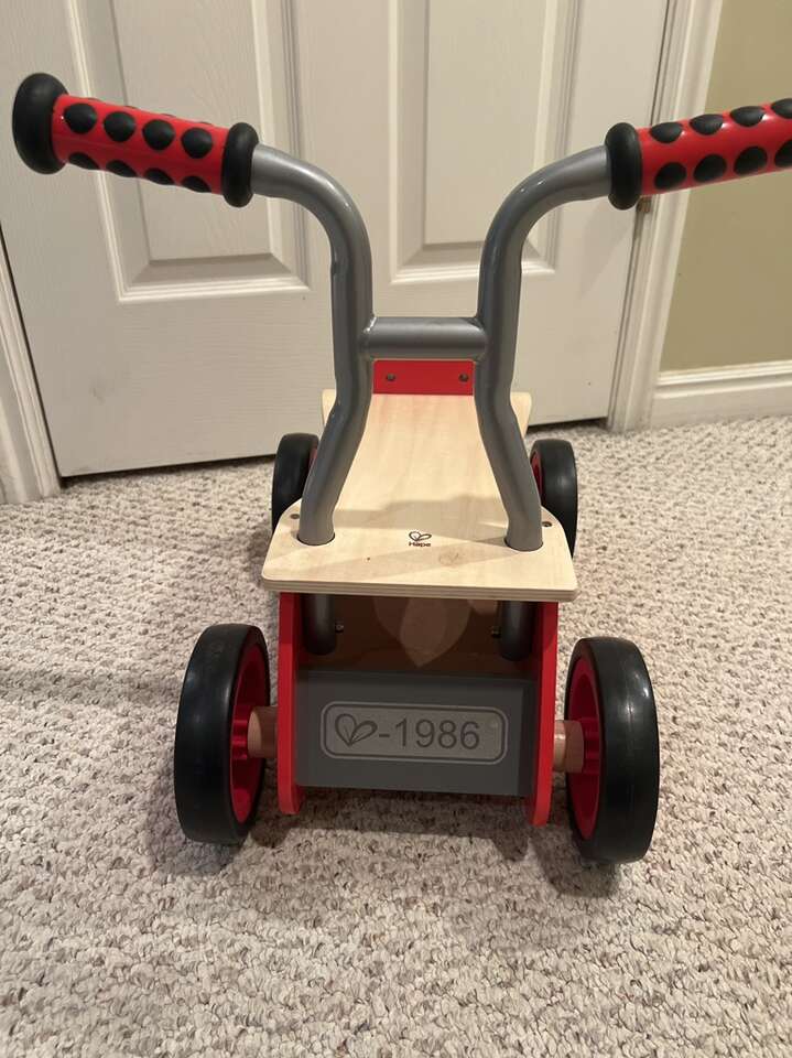 Like new Hape Little Red Rider Wooden, 4 Wheel Ride on or Push Bike/Car.
