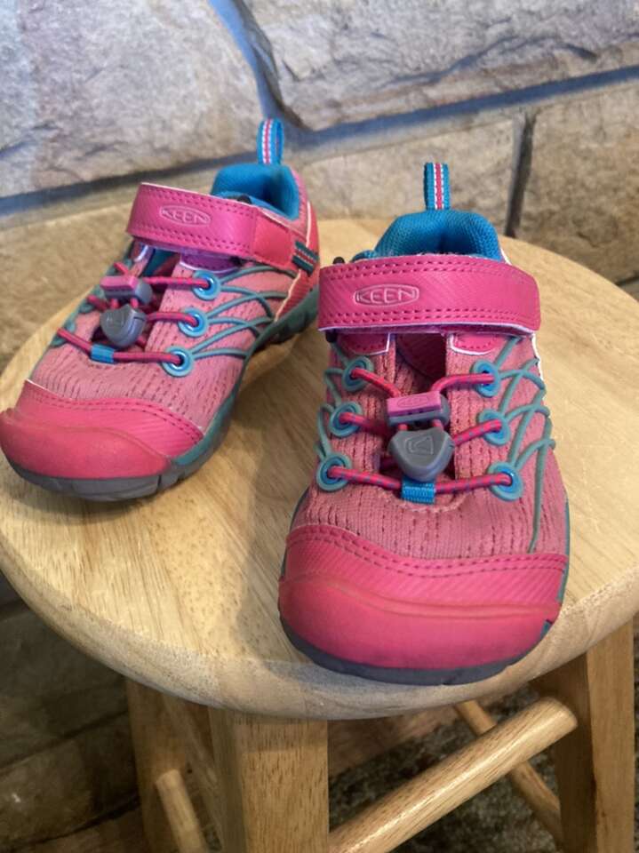Ikids Keen shoes. Kids size 9. Pink with blue trim. Like new condition!! Easy slip on/off. Retails new for$60.00. Contact with questions!!