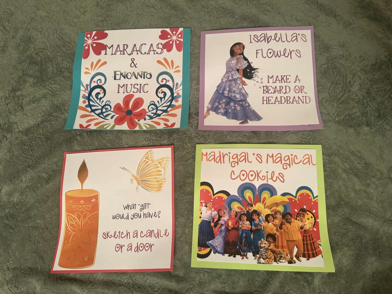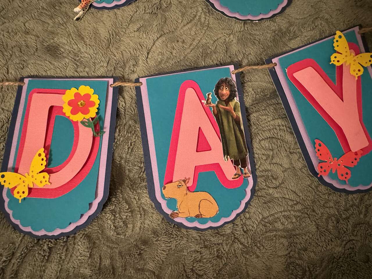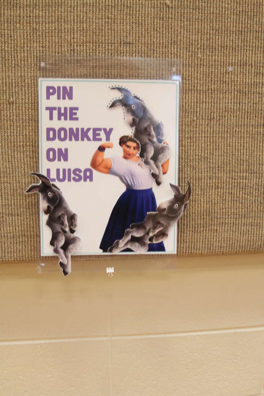 VenmoHomemade birthday banner, pin the donkey on Luisa game, beards, Encanto banner, activity printouts.