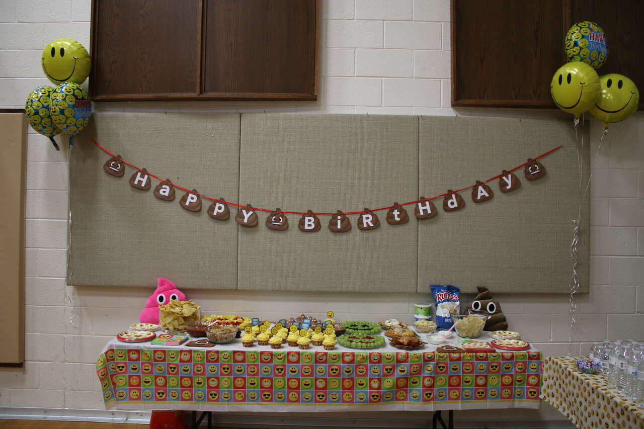 VenmoBirthday banner that is emoji poop theme and various poop items.