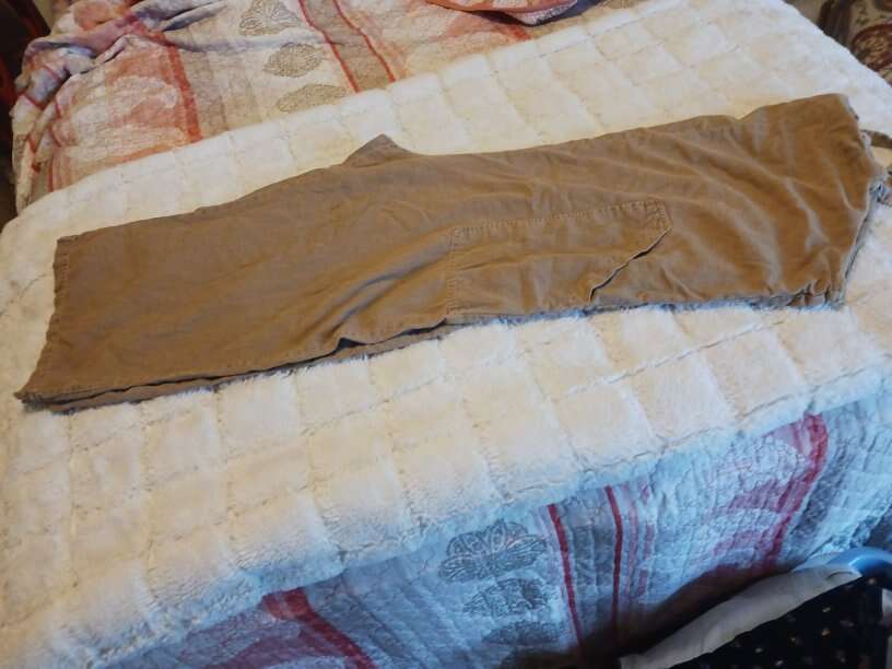 Three cute long pants and one pair of coveralls. All three pants have elastic at the waist and on the ankle cuffs. The tan capri coveralls have one strap unstitched easy fix for the price. $15.00 for all.