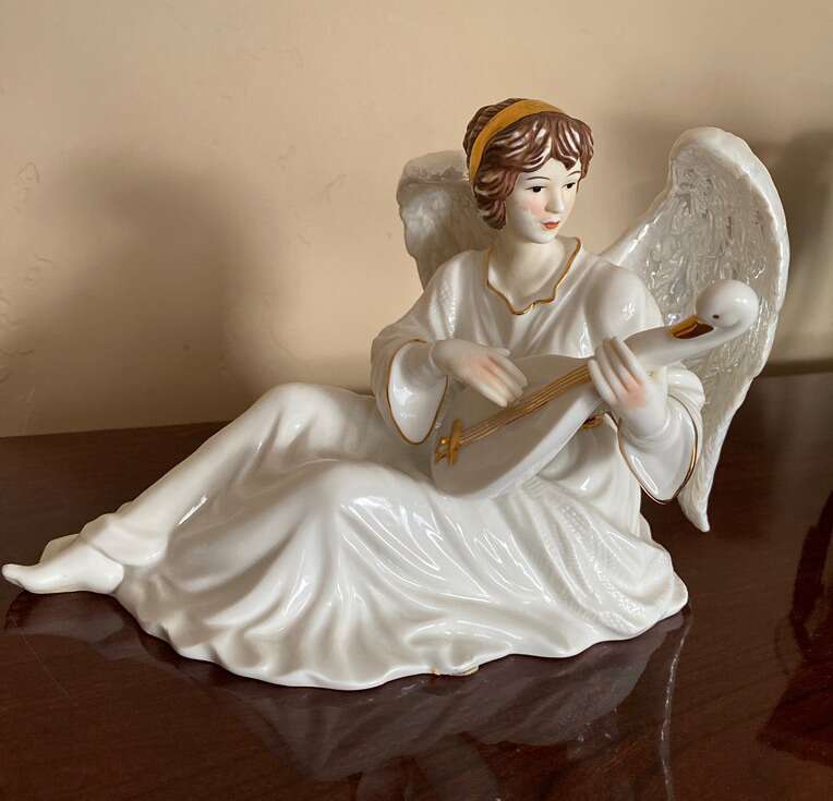 Ceramic angel for sale, color white with pearly wings. Let me know if you have any questions.