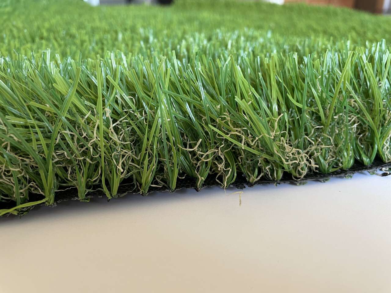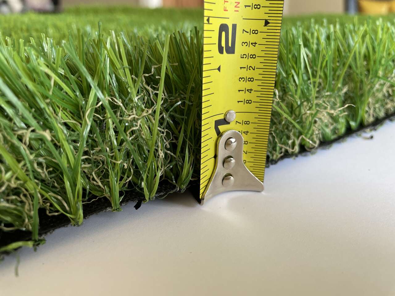 Artificial turf has been getting more and more realistic over recent years, and All About Modern LLC is now offering their very own affordable and natural looking New Mojo brand. This is not the artificial turf your neighbor installed 6 years ago. It actually looks like the grass you will see growing in Utah lawns, and is comprised of 2 different colored blades and a light brown thatch layer underneath. Soft, non-abrasive and safe for children and pets, the New Mojo artificial turf offers durability and years of worry-free enjoyment. Be the envy of your neighborhood with year-round green looking grass, even in January! Have perfectly looking manicured turf in completely shaded areas. Works great in hot, cold, wet, or dry climates. Water-proof polypropylene & polyethylene blades offer superior pet stain resistance, and the turf can easily be treated for extra stain resistance. Most box stores offer artificial grass with a pile height up to 1.5 inches and weight usually below 60 oz per sq yard, but the New Mojo artificial grass is 1.75 inches in height and 91 oz per sq yard in weight.