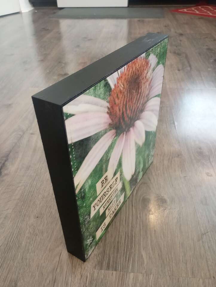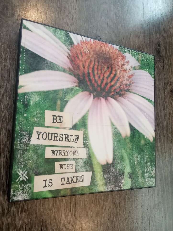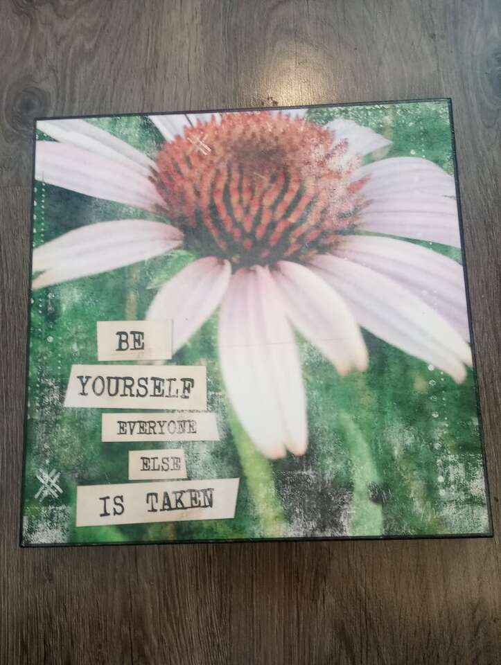 Gently used, wooden wall decor. Says: Be Yourself Everyone Else is Taken. Very cute! 12"x12".. In great condition and from a pet and smoke-free home. $10 cash or Venmo. Will hold with Venmo. Text if interested. Feel free to check out my other ads-lots for sale including other home decor.
