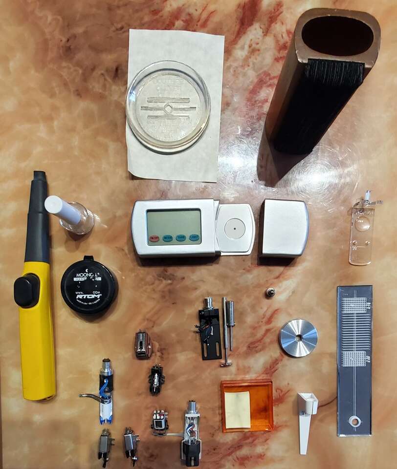 This has been my pride and joy, but I need to sell due to life changes. There are $700 of KAB (probably the leading supplier of 1200 mods) upgrades plus others, including damping, as you can see, outboard power supply, an Isoplatmat platter topper and periphery clamping. In particular, the arm dampening woek done addressed the most significant limitation of the Technics design. The heavy brass footers and three base plinths glued together are included. All in very good shape, including the cartridge, although the dust cover has scuffs (which perhaps can be buffed out). Includes valuable hardware including Souther Clever Clamp, electronic stylus gauge, antistat gun, mechanical end of record shutoff, 7 extra cartridges from Clearaudio Maestro, Audio Note, Stanton, Shures, Adcom Crosscoil (note not all are in working order, e.g., may need retipping, but these are highly valuable nonetheless), Discwasher, etc. This item is consigned with Utah Audio on Fort Union Blvd in Cottonwood Heights.