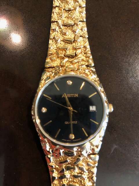 This is a mans watch that i bought new (for $1295.00)back in the mid 80s from Gordons Jewelers. This is not a Solid Gold Watch but it's not a cheap wal mart watch either. Gordons jewelers does not sell that kind of watch. This was there in house brand available through them only. This has real diamonds in it and real gold Plating. This beautiful watch is still in like new condition in original case and box. I havn't been able to find the original paper work for it yet and i may not have it...$500.00... Cash Only... No Checks... No Venmo.