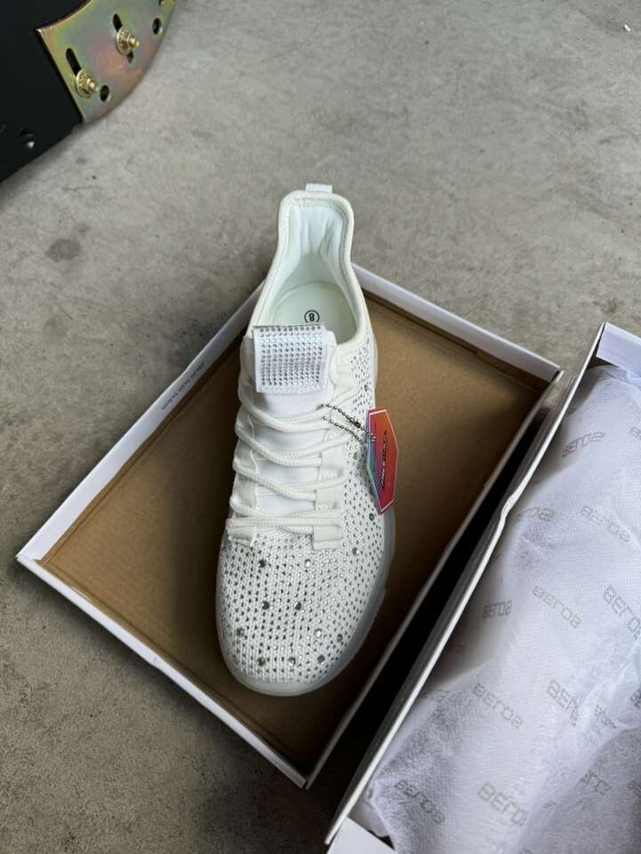 BELOS Women's Rhinestone Mesh Slip On Walking Shoes Fashion Breathable Spakle Glitter Sneaker