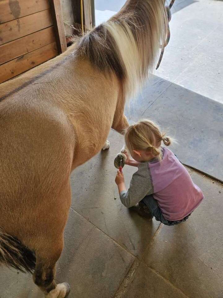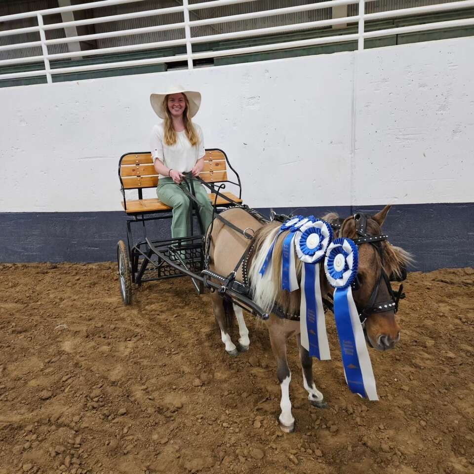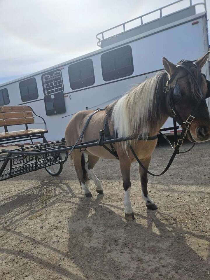 Meet Eleanor! This little pony would love to come to your next event! She loves all things kiddos and people and is so gentle and patient with them. Eleanor can carry about 65lbs, or pull her cart for larger kiddos or adults. She is a favorite to everyone at the barn and at shows, and can often be found babysitting kids as young as 3 yrs old!