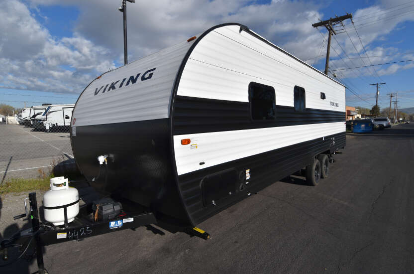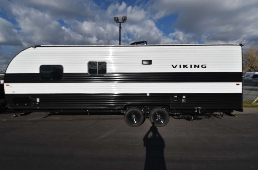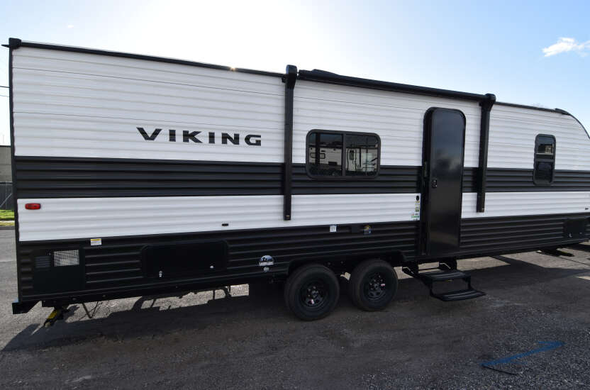 Family-Friendly Layout: With spacious bunk beds and a cozy master bedroom, this travel trailer comfortably sleeps up to 8, making it perfect for family vacations or group outings. Luxurious Comfort: Enjoy premium furnishings, ample storage, and a fully equipped kitchen with modern appliances to make every meal a delight. Outdoor Living: The Viking 26BH features a large awning and exterior storage, ideal for creating an outdoor oasis wherever you park. Durability & Style: Crafted by Forest River, this 2024 model boasts top-notch construction and a sleek design that turns heads at every campground.