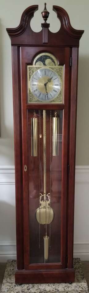 Perfect operating condition. No outstanding blemishes present on cherry wood casing. Howard Miller cleaning and servicing only performed on timepiece. Willing to answer any questions or take any additional photos upon request. Thank you for your interest.