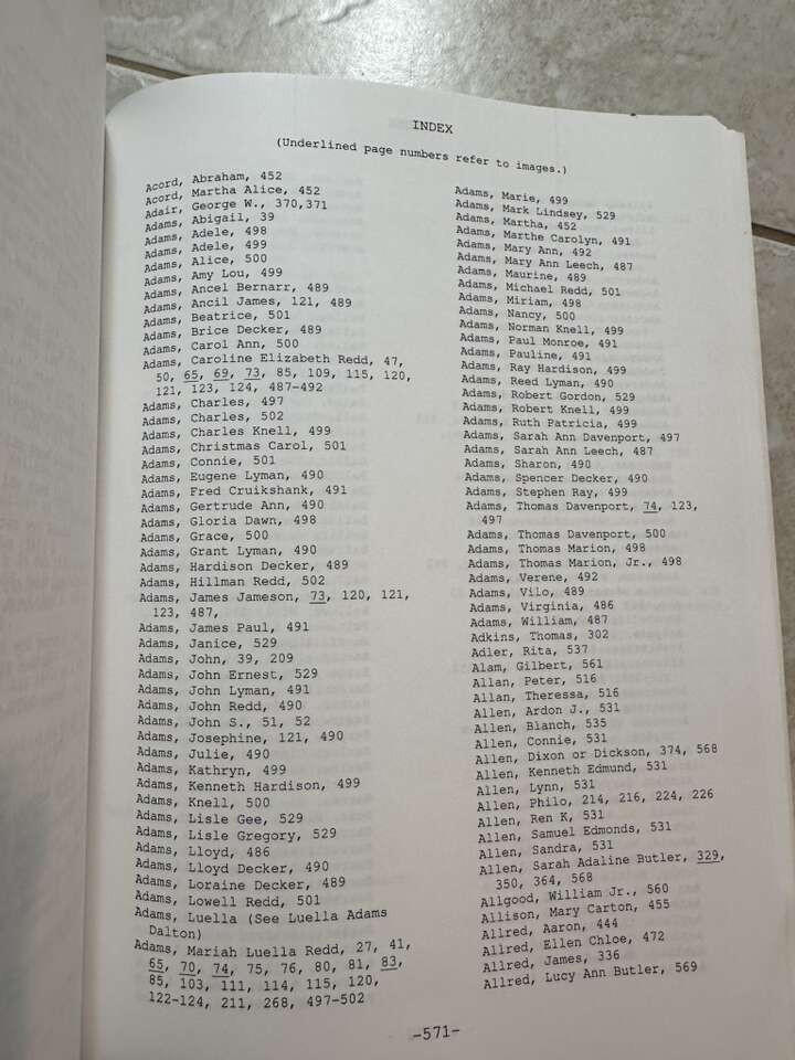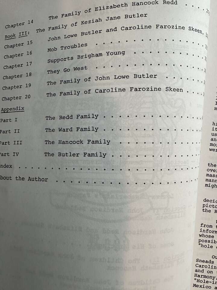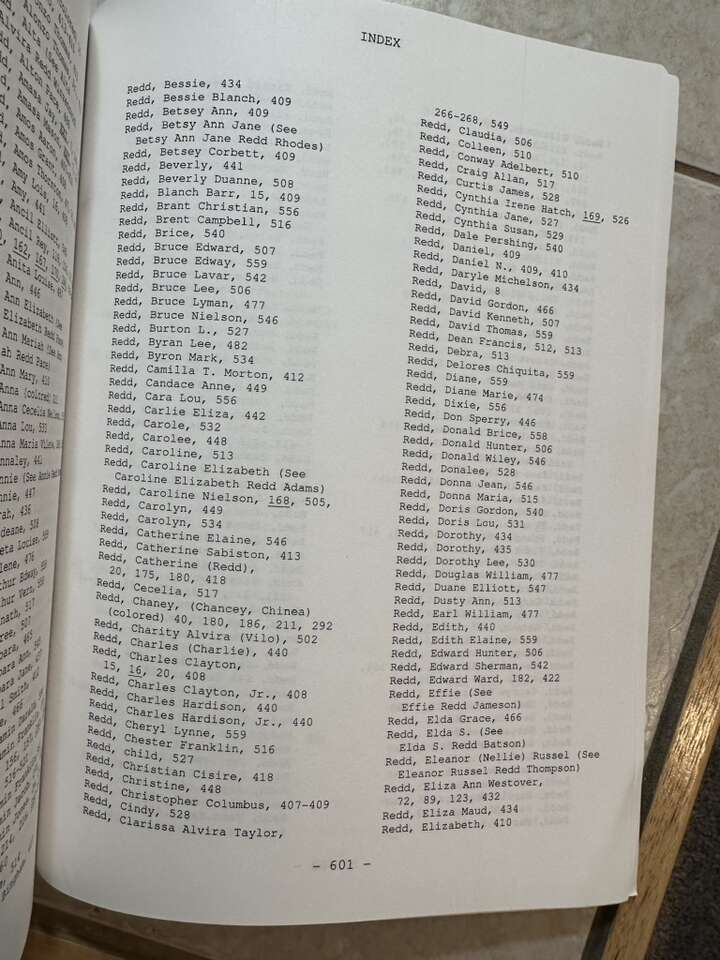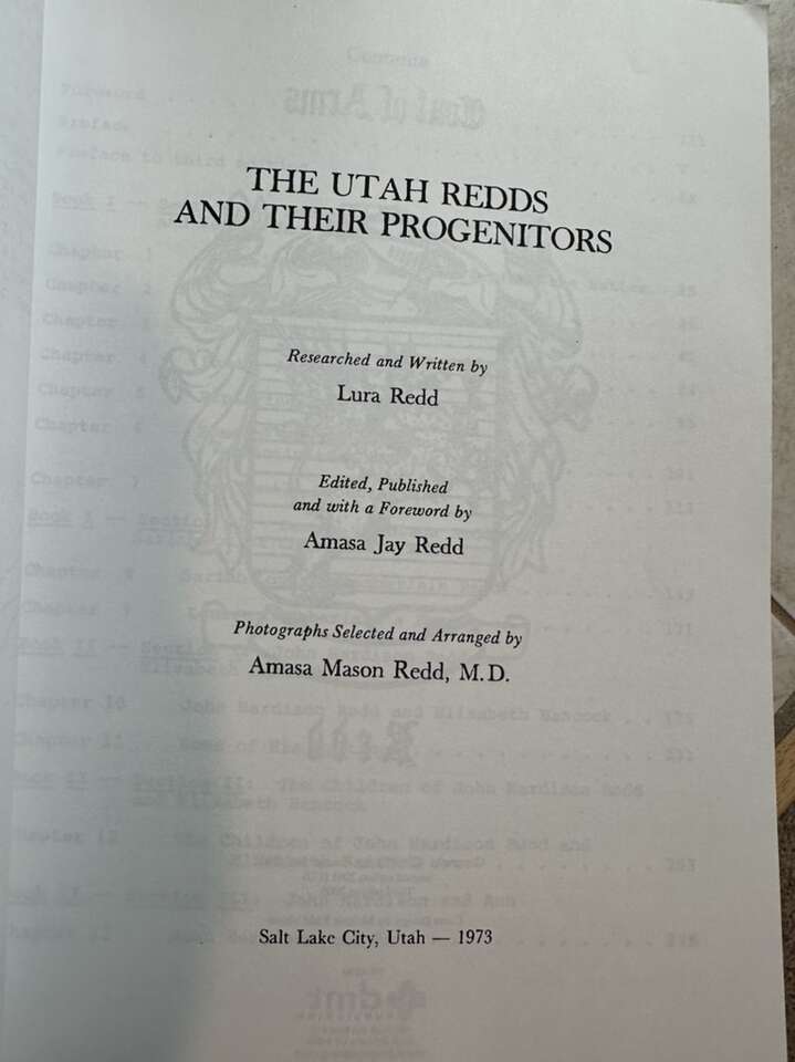 Hard to find 3-book compilation of genealogical research by: Lura Redd of the 1) Lemuel Hardison Redd; 2) John Hardison Redd; 3) John Lowe Butler families. Many references to the Adams, Brown, Bryner, Butler, Cook, Hancock, Hurst, McConkie, Pace, Taylor families, AMONG MANY MANY OTHERS. LDS. 621 pp. Softcover. From a non—smoking home. In very good condition. Cash only and local pickup, please. 400-E