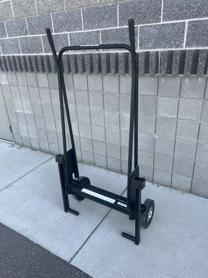 Description FEATURES: • All steel frame construction • 10 Wheels • Easy set-up for cable dispensing • No loose pieces • Compact Storage • Fits through 32 (81 cm) doorways • Priced right - built to last • Balanced right for a wide range of reels