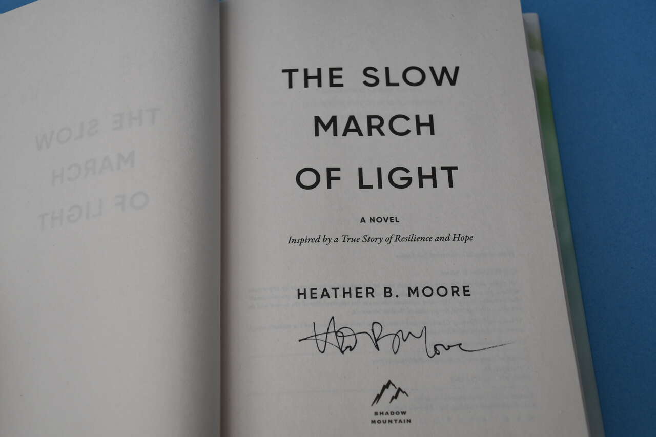 This "The Slow March of Light" Hardcover Book is a Signed, First Edition. It also has the Best of State Seal. Our home is smoke free. Questions??? Please ask. We are located in Plain City. Cash only please.