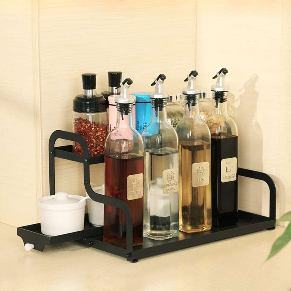 Organize your kitchen in style with this sleek 2 tier standing rack from Ditio. Made of high-quality metal and featuring a modern design, this rack is perfect for storing spices, bottles, dishes, and more. Its rectangular shape and medium size make it easy to fit on any countertop, while the two shelves provide ample space for all your kitchen essentials. With easy-to-clean features and a free-standing mounting style, this spice rack is perfect for adults who want to add a touch of organization to their home. Don't let cluttered countertops stress you out – simplify your life with this elegant and functional kitchen accessory.