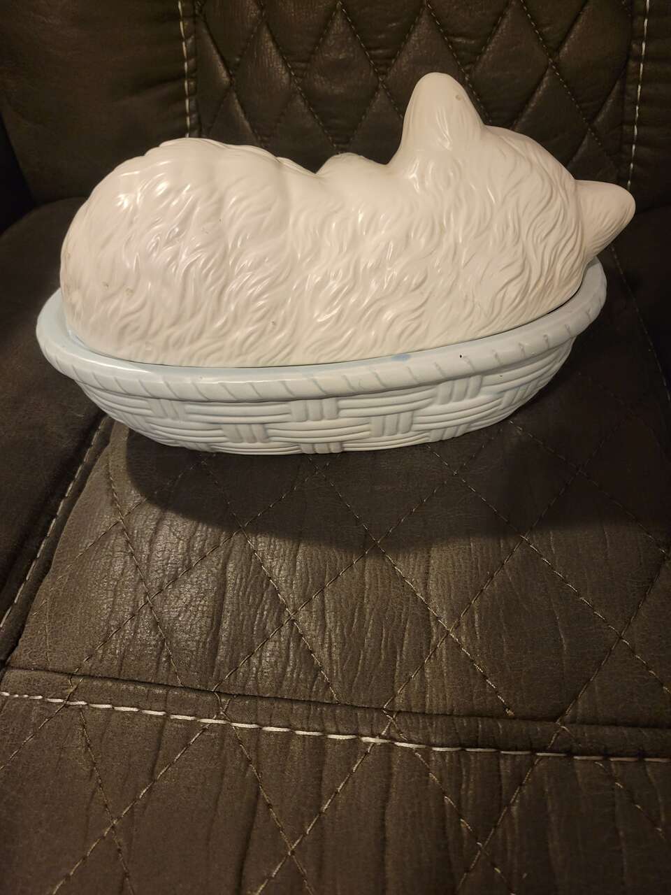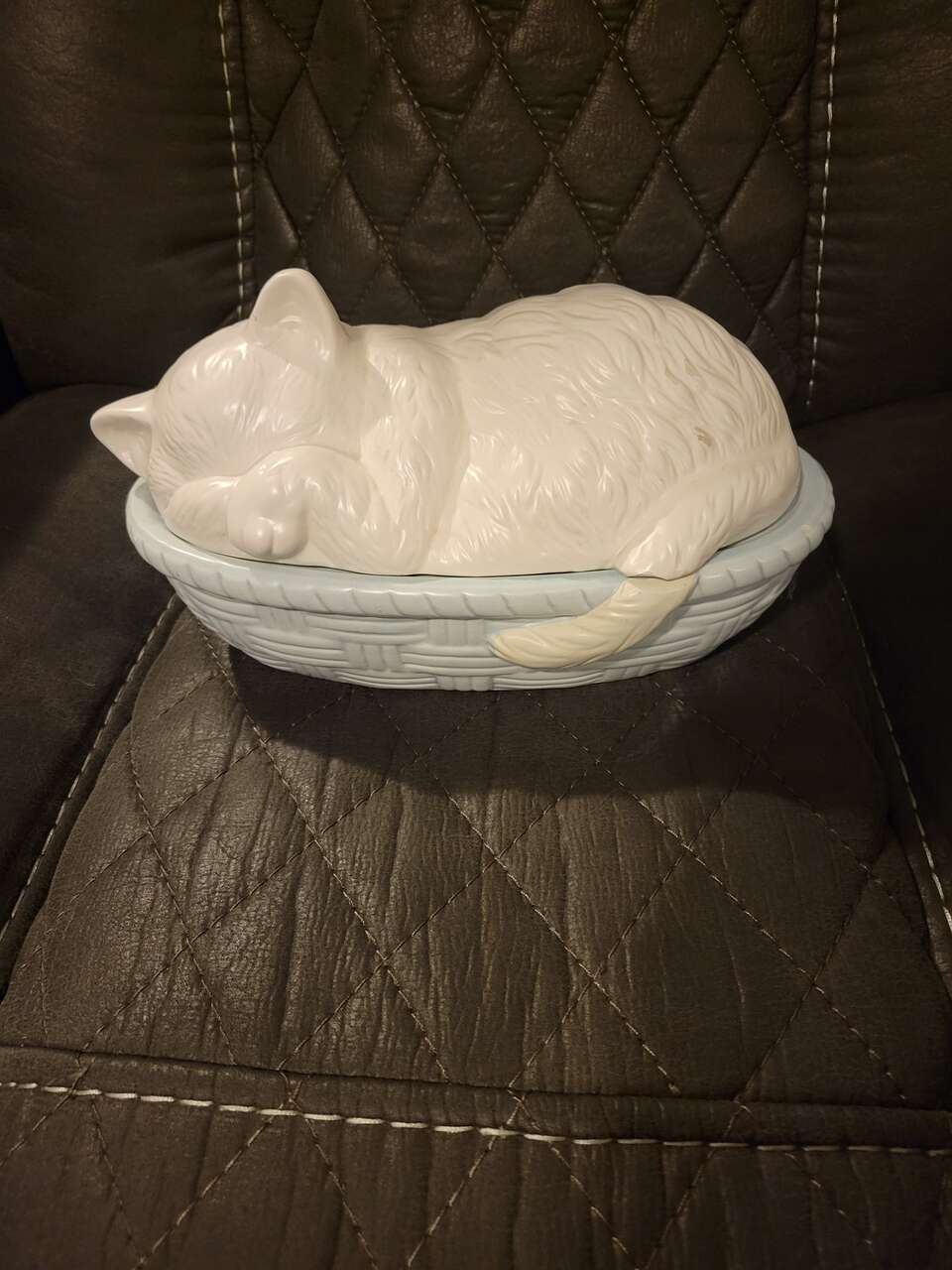 Vintage 1989 House of Lloyd 2 Piece Ceramic Cat/Kitten On Basket
