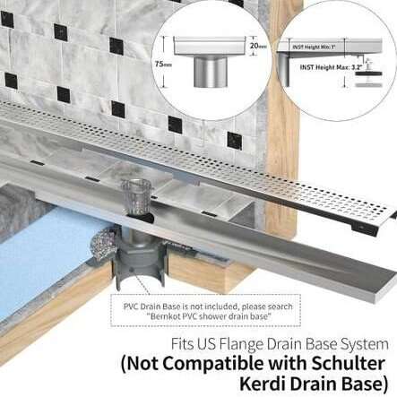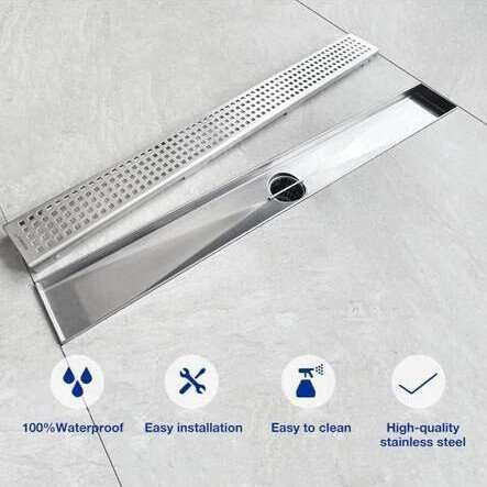 Linear Shower Drain 42", 304 Stainless Steel Floor Drain with Grid Drain Cover & Hair Strainer, Rectangular Shower Drain w/CUPC Certified, Brushed