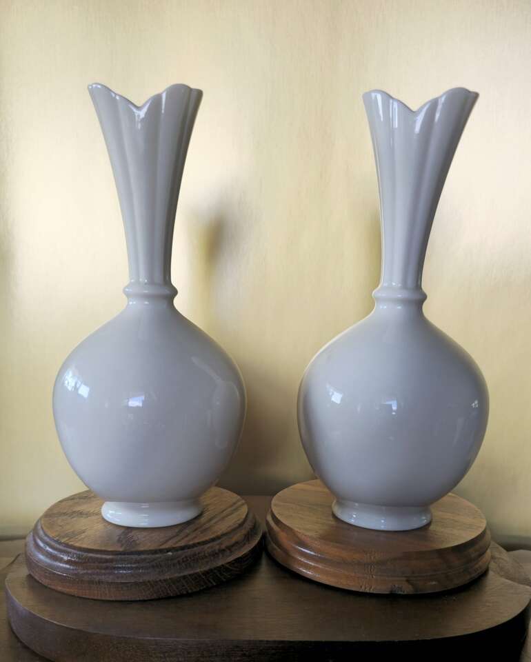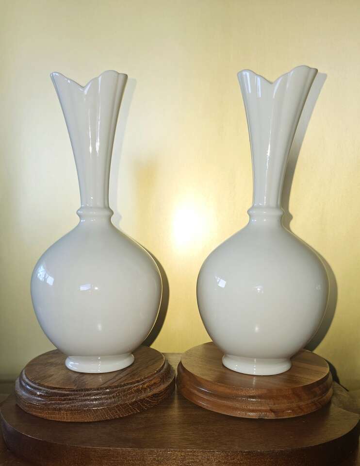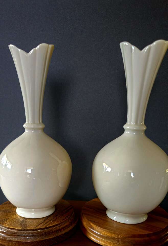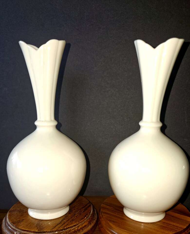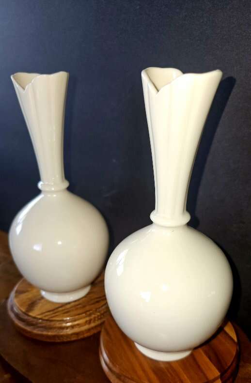 Set of rare Mid 1950's Vintage Lenox white ivory, globe bottomed, bud vases. Both in excellent shape, no chips or cracks.