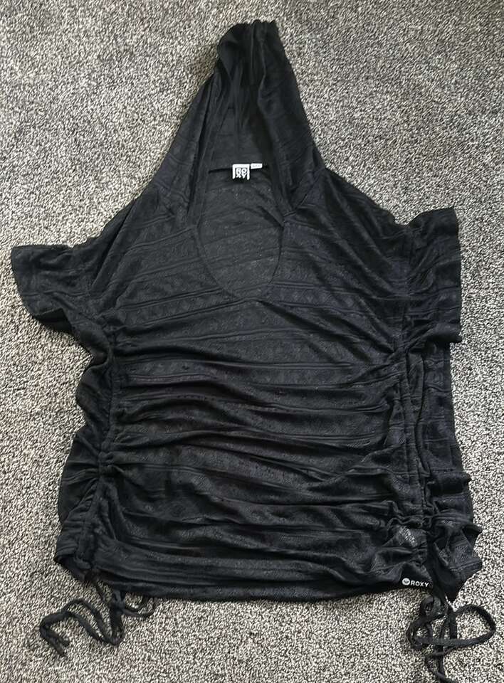 Roxy black swimsuit coverup in women's size medium in great condition. Has hood. The sides can be cinched up. Smoke-free, pet-free home. $15, cash only please.