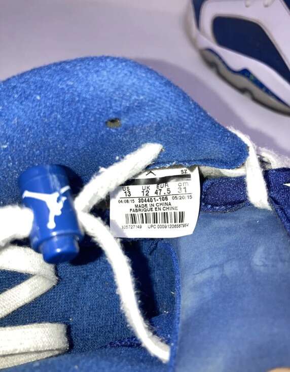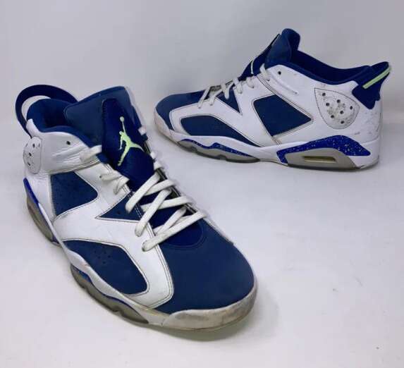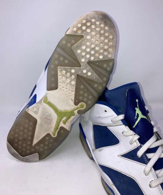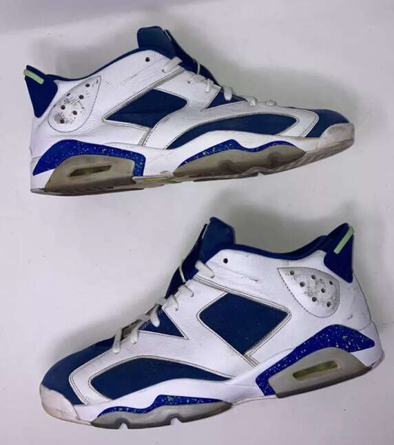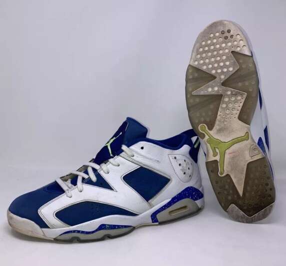 AiR Jordan 6 retro low color white/blue/green men’s size 13 AiR Jordan VI Retro 2015 sneakers #304401-106 pre-owned without box in good condition