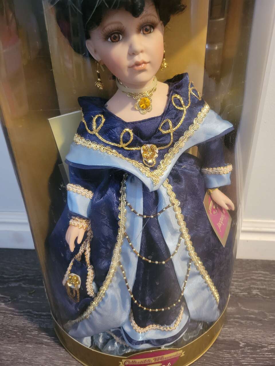 Collectible Memories Porcelain Doll "Jacquelyn" 18 inch in a beautifully made Blue Dress NEW IN BOX
