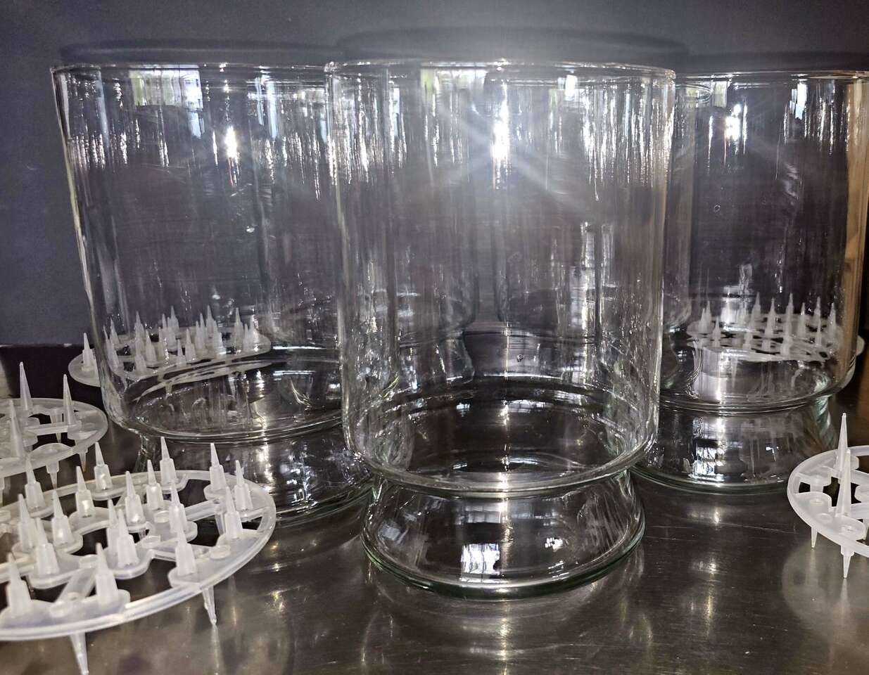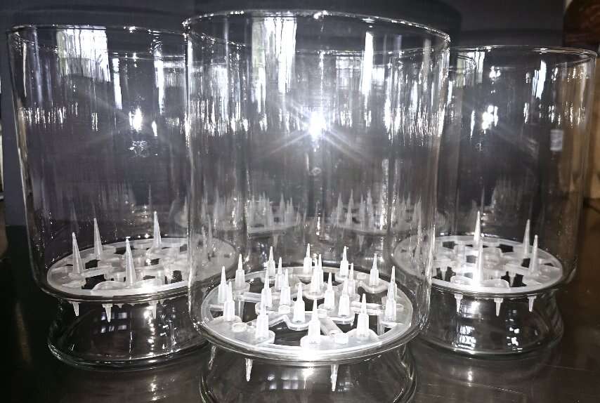 These pokey floral frogs paired with the glass bulb holders are perfect for growing any plant or flower that grows from a bulb. The spikes on the frogs help the bulbs stay equal distance apart and allows the roots to freely grow. These would also be pretty to use them to decorate for weddings or special events.