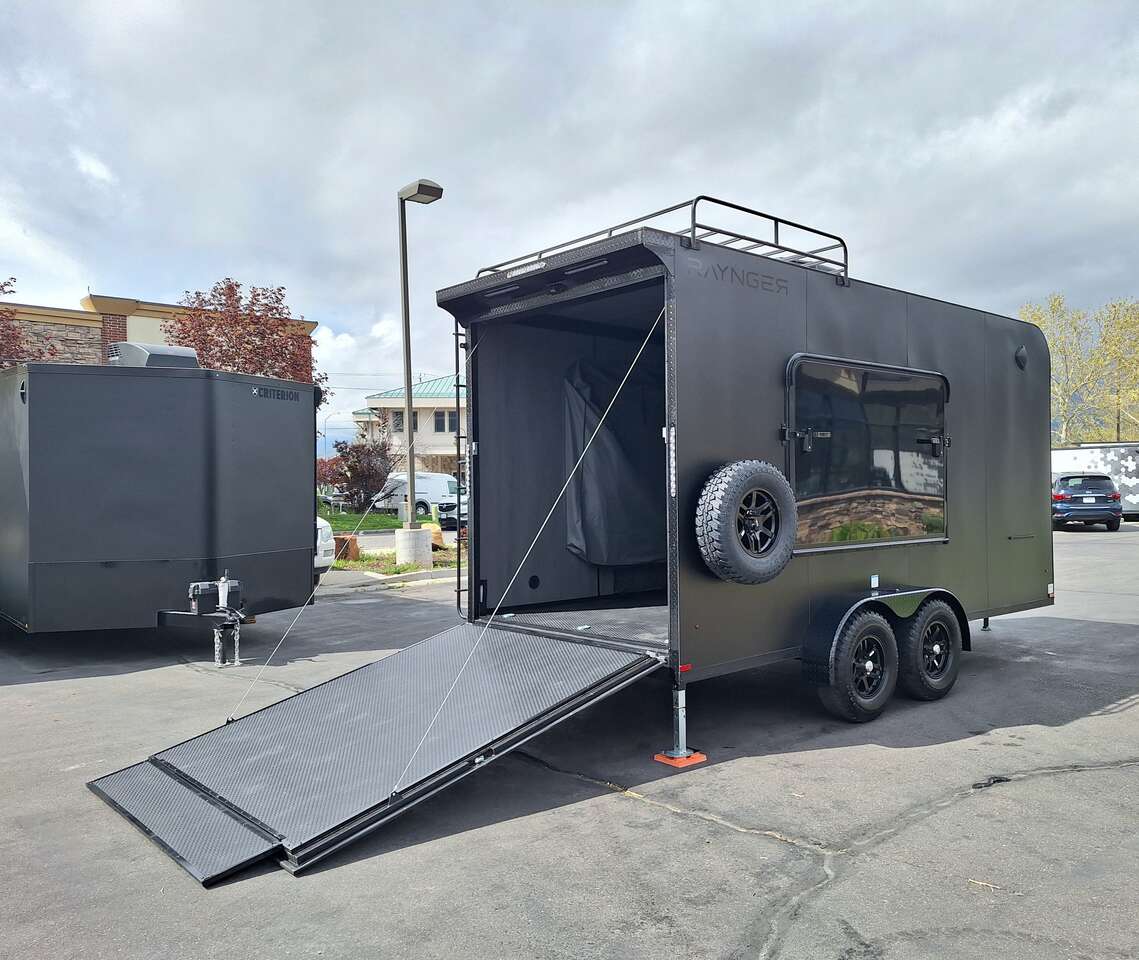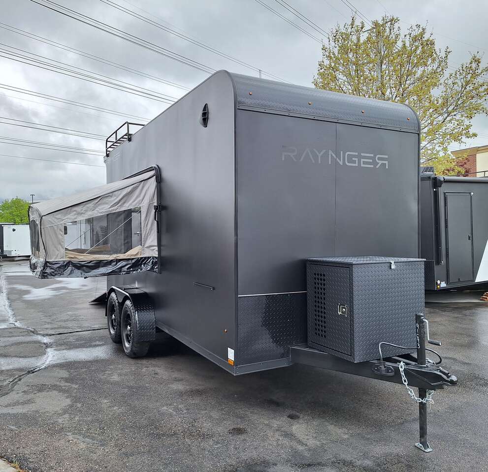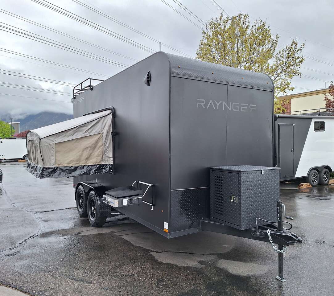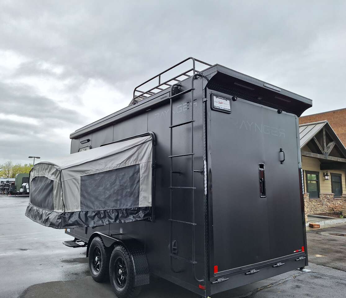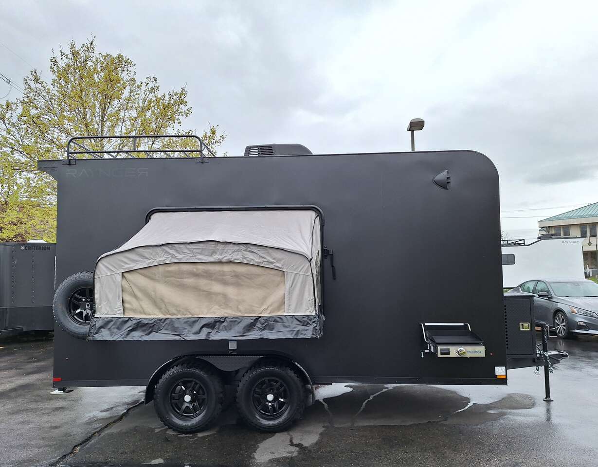 LIMITED TIME $228 A MONTH WITH ZERO DOWN WITH OUR SPECIAL LOCAL CREDIT UNION PARTNER!!! NO PRE-PAYMENT PENALTIES!!! NEW 2025 MODEL!!! WILL FIT ANY STOCK SIDE BY SIDE UTV!!! RAYNGER PREMIUM OFF ROAD TOY HAULER CAMPER!!! 18 INCH GROUND CLEARANCE!!! OFF ROAD TIRES!!! FULLY INSULATED!!! HEATING AND A/C!!! WET SOUND STEREO!!! TWO FOLD OUT/POP OUT TENTS WITH MATTRESS!!! CARGO BASKET!!! LED LIT AWNING!!! 84 Inch Rear Entry Height/87 INCH INTERIOR HEIGHT!!! 77 Inch Rear Entry Width!!! Aluminum Ventilated Locking Generator Box!!! UPGRADED TORSION AXLES!!! 14.2 Foot Long Garage Space!!! And Much MUCH MORE!!! Check out our Specs!!! Also available in 18 foot models. 18 Foot Models can have 3 Fold Out Beds/Pop Out Tents. 16 Foot and 18 Foot Models will fit ANY stock 4 Seater Side by Side • 6” I Beam Frame• Flat Top Design• Flat Front Design• Wall Posts 16” on Center• Cross Members 16” on Center• Roof Bows 16” on Center• Rust Inhibiting Z-Tech Protection on Chassis• Ameraguard on Tongue• Ameraguard on Rear Bumper• Ameraguard Around All Door Openings and Stepwell• Ameraguard Around Edges of Ramp Door• 3500 LB Spring Axles• 2-5/16” Coupler• One-Piece Aluminum Roof• ST235/75R15 Aluminum Wheels with Chrome Center Caps• 2000# Ramp Door with Eberhard Latch• 30” Tempered Glass RV Door with Screen Door• .030 Exterior Metal with Screwless Sides• 24” Black Stoneguard• 3” Black Bottom Trim• Sand Pad• Black Door Hold• 2.7mm Charcoal Textured Vinyl Ceiling • 9mm Charcoal Textured Vinyl Walls• 3/4” Engineered Wood Floor with Rubber Coin Overlay• (6) 1200 LB Floor D rings Installed with Backer Plates• LED Clearance Lights and Tail Lights• LED Back-up Lights• No Show Wheel Box• Spoiler with Toggle Switch• RV Step• 7’ Interior• (2) 17” Chrome Base Lights with Switch• (1) Black 17” Spot Light with Switch• (1) 30 Amp Panel with Marine Plug• A/C Unit with Heat Strip• (3) Interior Recepts• (1) Exterior Recept• 12V Battery and Charge Line• Prep for Backup Camera• Wet Sounds System• (3) Blue Interior Cabinet Lights• (1) 6’ Section of Flex Lights• Black ATP Rear Header and Hoop• Black ATP Fenders• Insulated Walls & Ceiling• Base Cabinets• Overhead Cabinets with Netting Over Compartments• Pop Out Tent• Black ATP Storage/Generator Box Mounted On Tongue SW091693