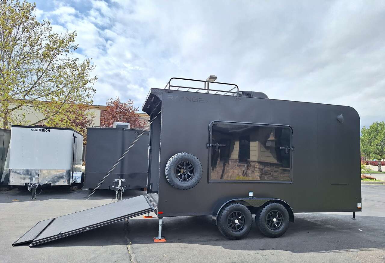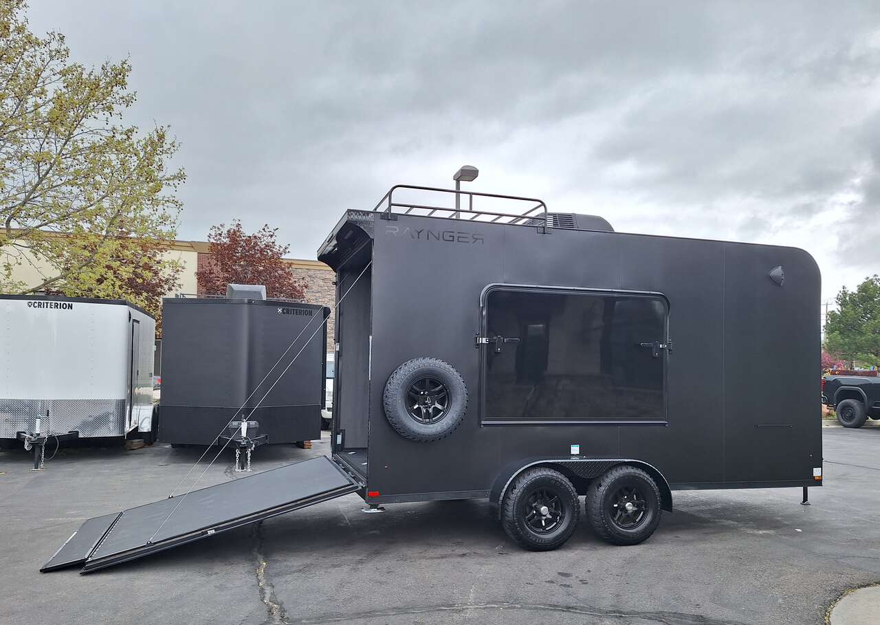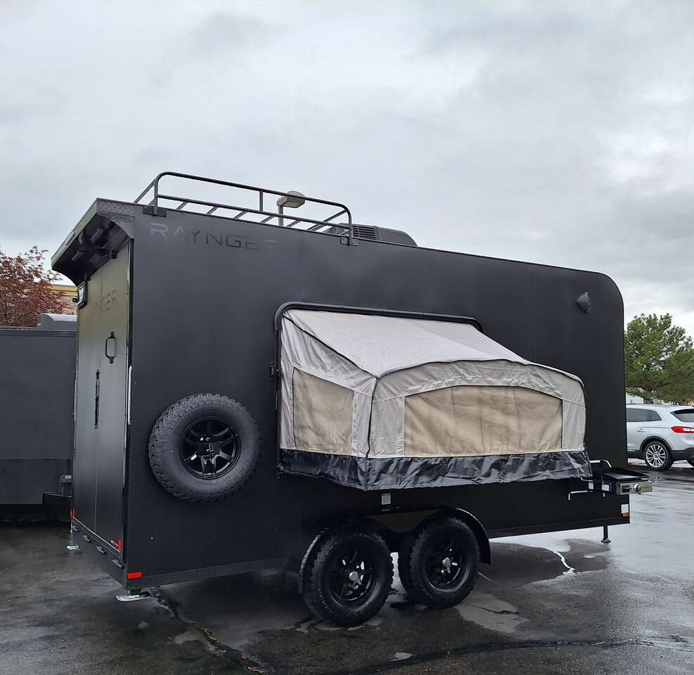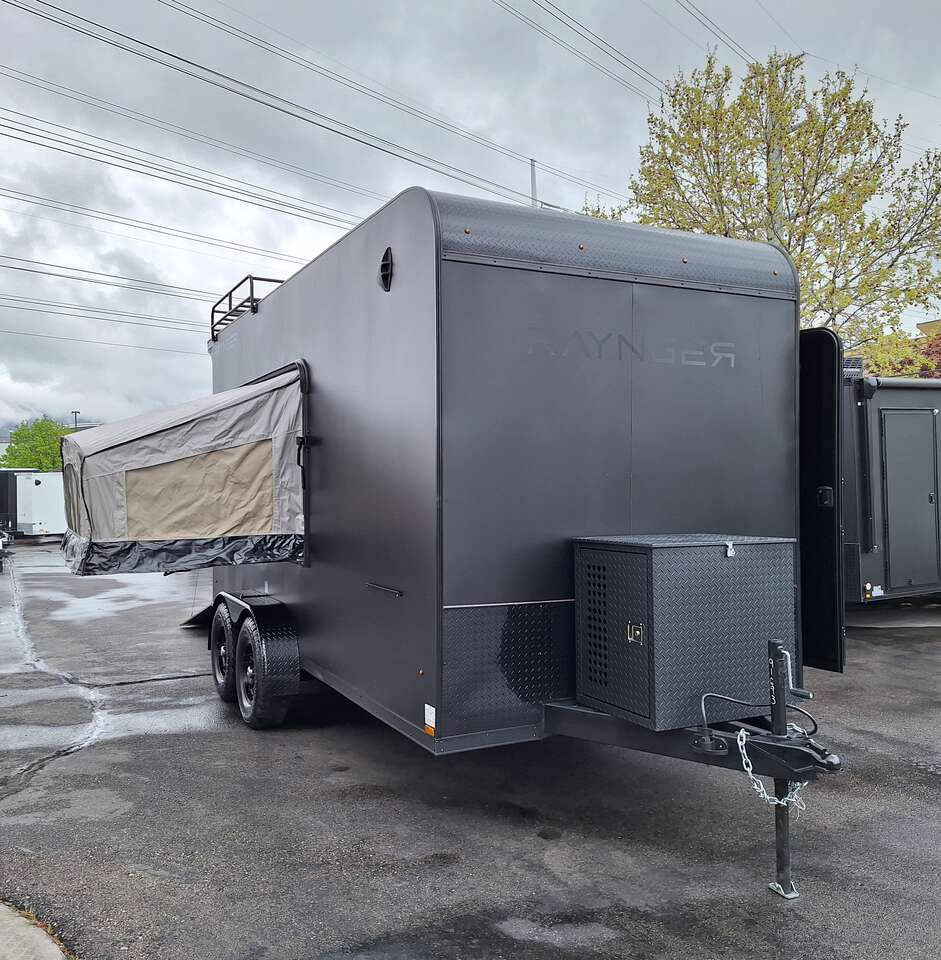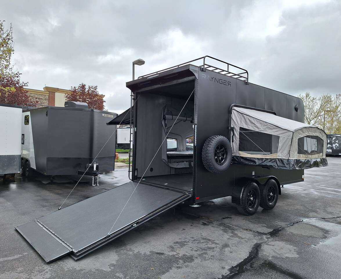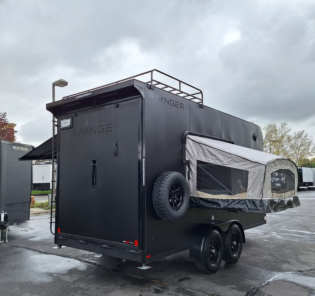 LIMITED TIME $228 A MONTH WITH ZERO DOWN WITH OUR SPECIAL LOCAL CREDIT UNION PARTNER!!! NO PRE-PAYMENT PENALTIES!!! NEW 2025 MODEL!!! WILL FIT ANY STOCK SIDE BY SIDE UTV!!! RAYNGER PREMIUM OFF ROAD TOY HAULER CAMPER!!! 18 INCH GROUND CLEARANCE!!! OFF ROAD TIRES!!! FULLY INSULATED!!! HEATING AND A/C!!! WET SOUND STEREO!!! TWO FOLD OUT/POP OUT TENTS WITH MATTRESS!!! CARGO BASKET!!! LED LIT AWNING!!! 84 Inch Rear Entry Height/87 INCH INTERIOR HEIGHT!!! 77 Inch Rear Entry Width!!! Aluminum Ventilated Locking Generator Box!!! UPGRADED TORSION AXLES!!! 14.2 Foot Long Garage Space!!! And Much MUCH MORE!!! Check out our Specs!!! Also available in 18 foot models. 18 Foot Models can have 3 Fold Out Beds/Pop Out Tents. 16 Foot and 18 Foot Models will fit ANY stock 4 Seater Side by Side • 6” I Beam Frame• Flat Top Design• Flat Front Design• Wall Posts 16” on Center• Cross Members 16” on Center• Roof Bows 16” on Center• Rust Inhibiting Z-Tech Protection on Chassis• Ameraguard on Tongue• Ameraguard on Rear Bumper• Ameraguard Around All Door Openings and Stepwell• Ameraguard Around Edges of Ramp Door• 3500 LB Spring Axles• 2-5/16” Coupler• One-Piece Aluminum Roof• ST235/75R15 Aluminum Wheels with Chrome Center Caps• 2000# Ramp Door with Eberhard Latch• 30” Tempered Glass RV Door with Screen Door• .030 Exterior Metal with Screwless Sides• 24” Black Stoneguard• 3” Black Bottom Trim• Sand Pad• Black Door Hold• 2.7mm Charcoal Textured Vinyl Ceiling • 9mm Charcoal Textured Vinyl Walls• 3/4” Engineered Wood Floor with Rubber Coin Overlay• (6) 1200 LB Floor D rings Installed with Backer Plates• LED Clearance Lights and Tail Lights• LED Back-up Lights• No Show Wheel Box• Spoiler with Toggle Switch• RV Step• 7’ Interior• (2) 17” Chrome Base Lights with Switch• (1) Black 17” Spot Light with Switch• (1) 30 Amp Panel with Marine Plug• A/C Unit with Heat Strip• (3) Interior Recepts• (1) Exterior Recept• 12V Battery and Charge Line• Prep for Backup Camera• Wet Sounds System• (3) Blue Interior Cabinet Lights• (1) 6’ Section of Flex Lights• Black ATP Rear Header and Hoop• Black ATP Fenders• Insulated Walls & Ceiling• Base Cabinets• Overhead Cabinets with Netting Over Compartments• Pop Out Tent• Black ATP Storage/Generator Box Mounted On Tongue SW091693