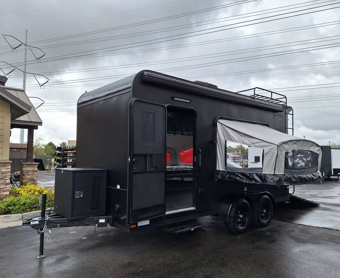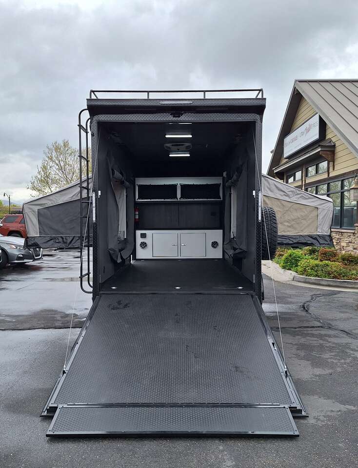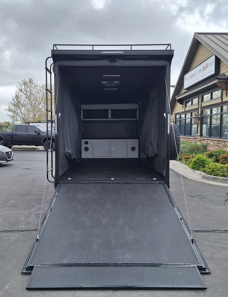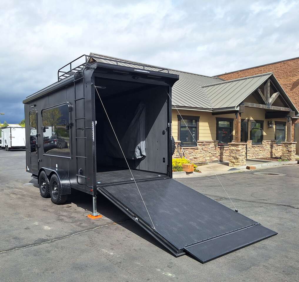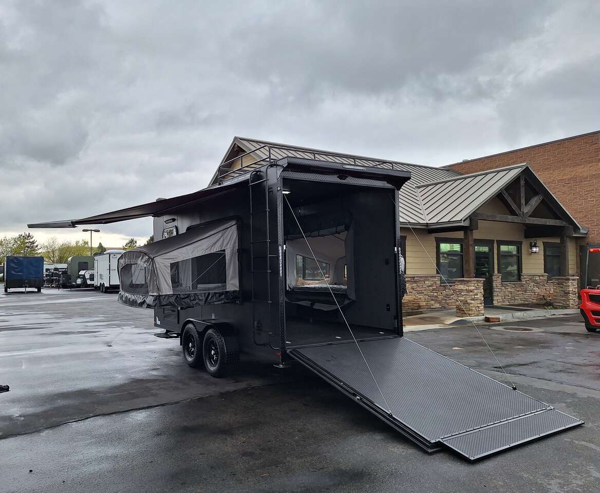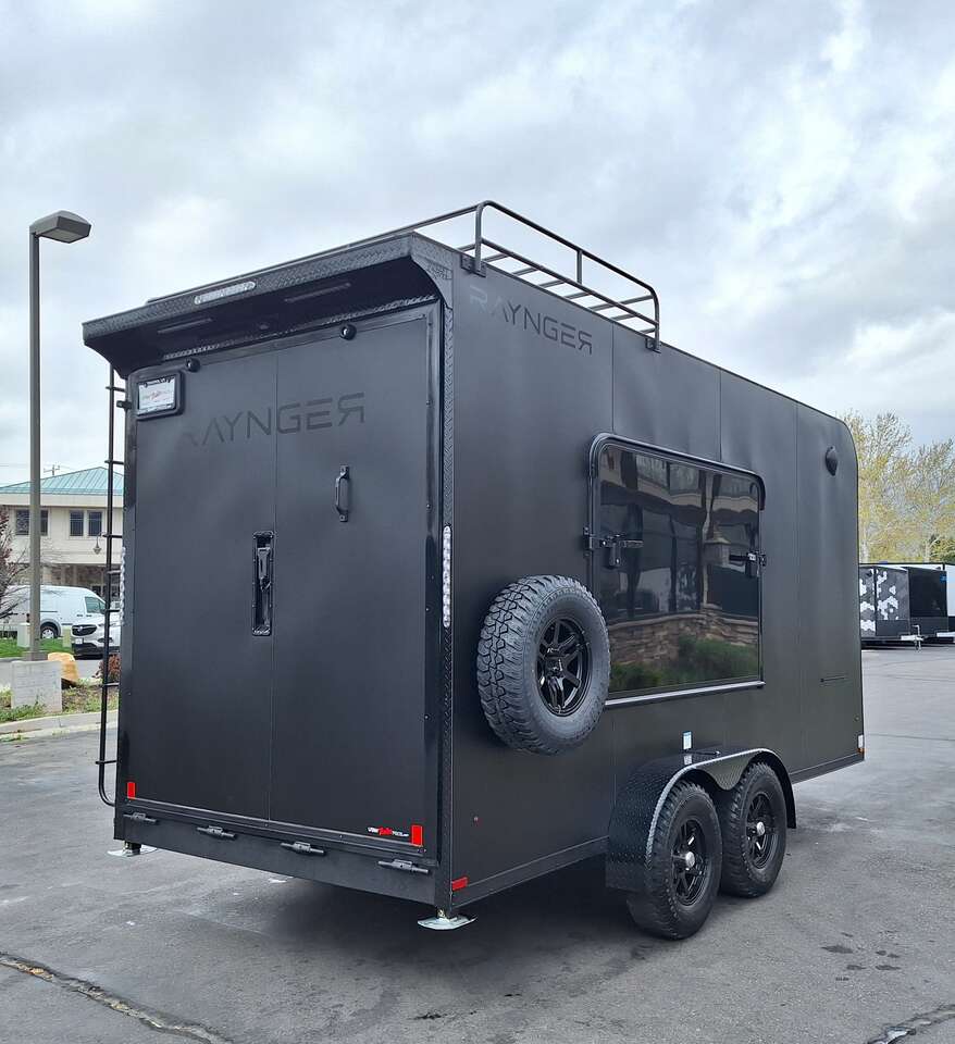 LIMITED TIME $228 A MONTH WITH ZERO DOWN WITH OUR SPECIAL LOCAL CREDIT UNION PARTNER!!! NO PRE-PAYMENT PENALTIES!!! NEW 2025 MODEL!!! WILL FIT ANY STOCK SIDE BY SIDE UTV!!! RAYNGER PREMIUM OFF ROAD TOY HAULER CAMPER!!! 18 INCH GROUND CLEARANCE!!! OFF ROAD TIRES!!! FULLY INSULATED!!! HEATING AND A/C!!! WET SOUND STEREO!!! TWO FOLD OUT/POP OUT TENTS WITH MATTRESS!!! CARGO BASKET!!! LED LIT AWNING!!! 84 Inch Rear Entry Height/87 INCH INTERIOR HEIGHT!!! 77 Inch Rear Entry Width!!! Aluminum Ventilated Locking Generator Box!!! UPGRADED TORSION AXLES!!! 14.2 Foot Long Garage Space!!! And Much MUCH MORE!!! Check out our Specs!!! Also available in 18 foot models. 18 Foot Models can have 3 Fold Out Beds/Pop Out Tents. 16 Foot and 18 Foot Models will fit ANY stock 4 Seater Side by Side • 6” I Beam Frame• Flat Top Design• Flat Front Design• Wall Posts 16” on Center• Cross Members 16” on Center• Roof Bows 16” on Center• Rust Inhibiting Z-Tech Protection on Chassis• Ameraguard on Tongue• Ameraguard on Rear Bumper• Ameraguard Around All Door Openings and Stepwell• Ameraguard Around Edges of Ramp Door• 3500 LB Spring Axles• 2-5/16” Coupler• One-Piece Aluminum Roof• ST235/75R15 Aluminum Wheels with Chrome Center Caps• 2000# Ramp Door with Eberhard Latch• 30” Tempered Glass RV Door with Screen Door• .030 Exterior Metal with Screwless Sides• 24” Black Stoneguard• 3” Black Bottom Trim• Sand Pad• Black Door Hold• 2.7mm Charcoal Textured Vinyl Ceiling • 9mm Charcoal Textured Vinyl Walls• 3/4” Engineered Wood Floor with Rubber Coin Overlay• (6) 1200 LB Floor D rings Installed with Backer Plates• LED Clearance Lights and Tail Lights• LED Back-up Lights• No Show Wheel Box• Spoiler with Toggle Switch• RV Step• 7’ Interior• (2) 17” Chrome Base Lights with Switch• (1) Black 17” Spot Light with Switch• (1) 30 Amp Panel with Marine Plug• A/C Unit with Heat Strip• (3) Interior Recepts• (1) Exterior Recept• 12V Battery and Charge Line• Prep for Backup Camera• Wet Sounds System• (3) Blue Interior Cabinet Lights• (1) 6’ Section of Flex Lights• Black ATP Rear Header and Hoop• Black ATP Fenders• Insulated Walls & Ceiling• Base Cabinets• Overhead Cabinets with Netting Over Compartments• Pop Out Tent• Black ATP Storage/Generator Box Mounted On Tongue SW091693