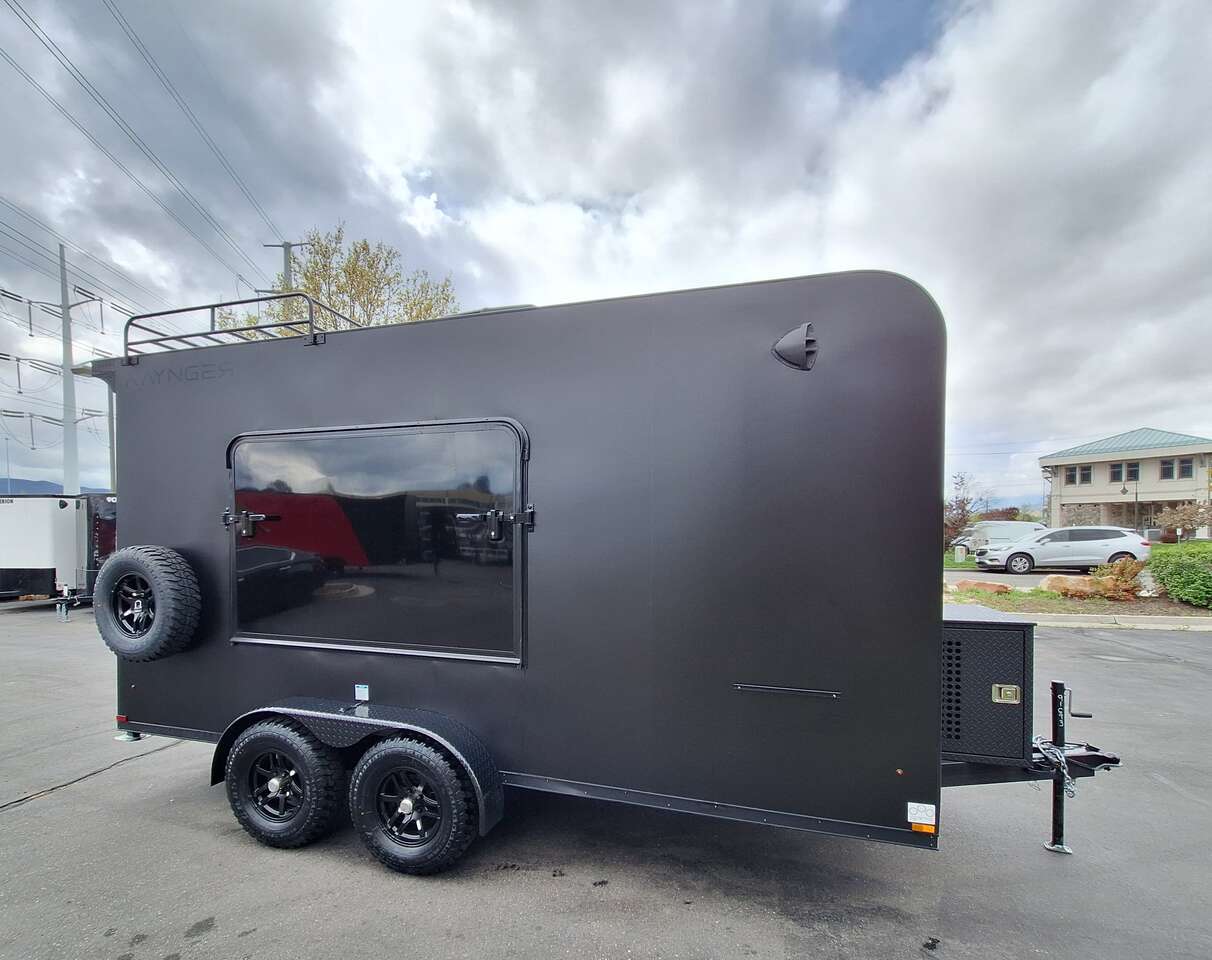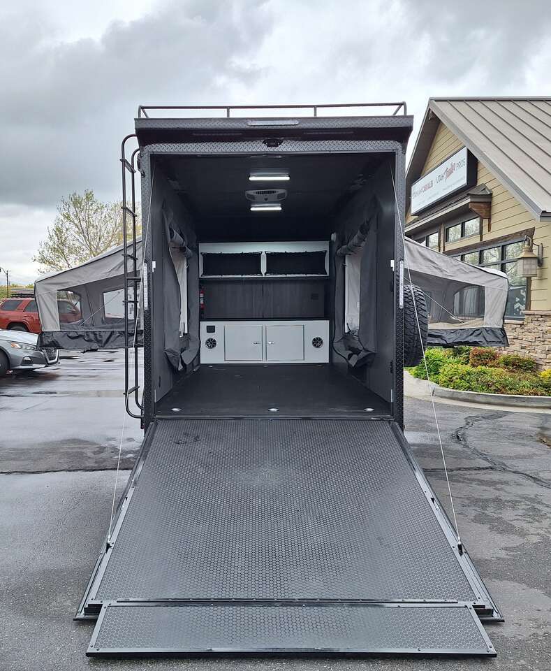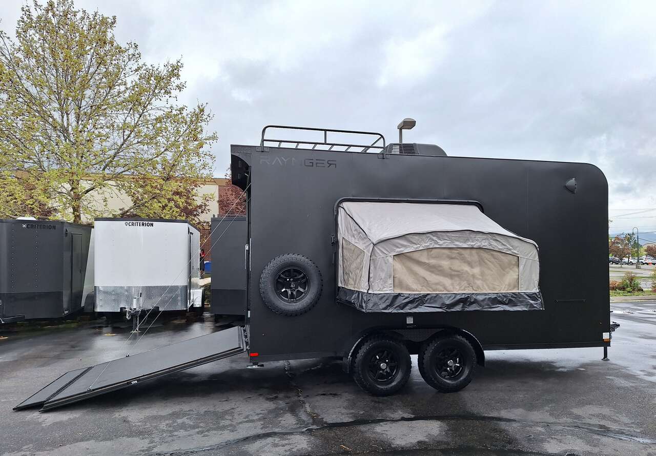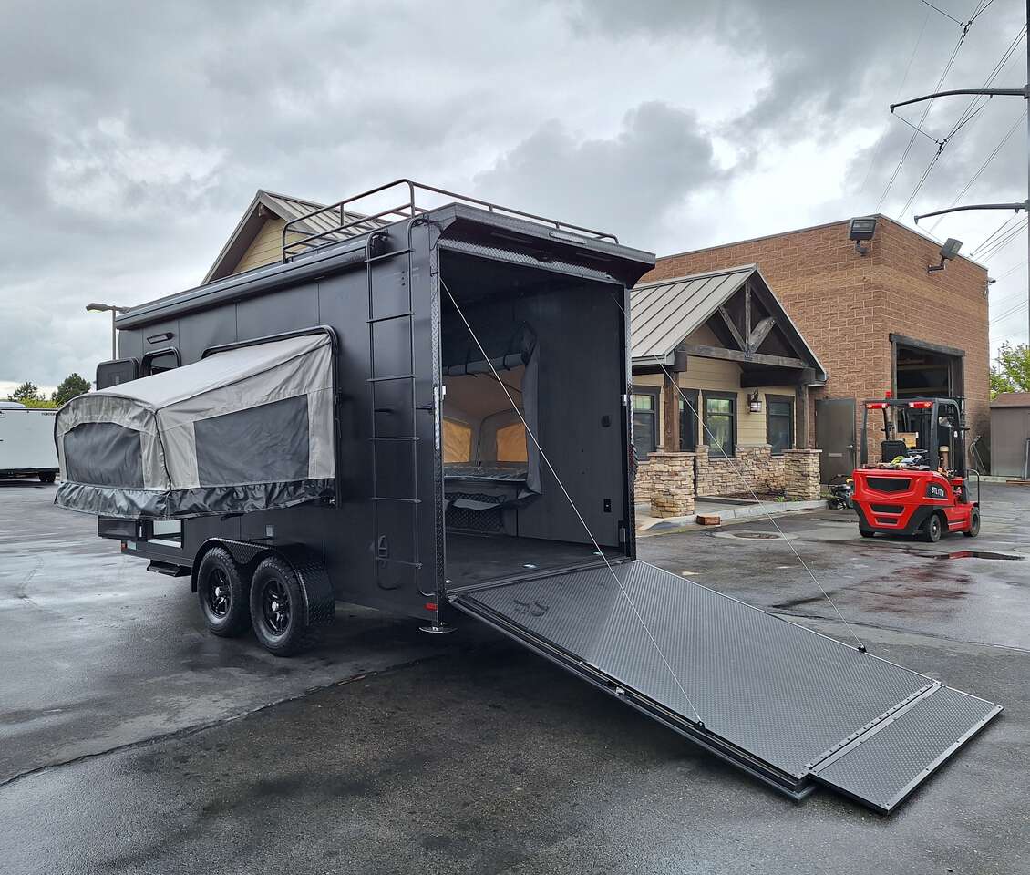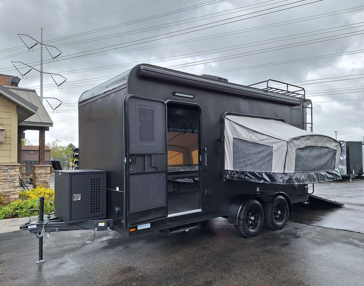 LIMITED TIME $228 A MONTH WITH ZERO DOWN WITH OUR SPECIAL LOCAL CREDIT UNION PARTNER!!! NO PRE-PAYMENT PENALTIES!!! NEW 2025 MODEL!!! WILL FIT ANY STOCK SIDE BY SIDE UTV!!! RAYNGER PREMIUM OFF ROAD TOY HAULER CAMPER!!! 18 INCH GROUND CLEARANCE!!! OFF ROAD TIRES!!! FULLY INSULATED!!! HEATING AND A/C!!! WET SOUND STEREO!!! TWO FOLD OUT/POP OUT TENTS WITH MATTRESS!!! CARGO BASKET!!! LED LIT AWNING!!! 84 Inch Rear Entry Height/87 INCH INTERIOR HEIGHT!!! 77 Inch Rear Entry Width!!! Aluminum Ventilated Locking Generator Box!!! UPGRADED TORSION AXLES!!! 14.2 Foot Long Garage Space!!! And Much MUCH MORE!!! Check out our Specs!!! Also available in 18 foot models. 18 Foot Models can have 3 Fold Out Beds/Pop Out Tents. 16 Foot and 18 Foot Models will fit ANY stock 4 Seater Side by Side • 6” I Beam Frame• Flat Top Design• Flat Front Design• Wall Posts 16” on Center• Cross Members 16” on Center• Roof Bows 16” on Center• Rust Inhibiting Z-Tech Protection on Chassis• Ameraguard on Tongue• Ameraguard on Rear Bumper• Ameraguard Around All Door Openings and Stepwell• Ameraguard Around Edges of Ramp Door• 3500 LB Spring Axles• 2-5/16” Coupler• One-Piece Aluminum Roof• ST235/75R15 Aluminum Wheels with Chrome Center Caps• 2000# Ramp Door with Eberhard Latch• 30” Tempered Glass RV Door with Screen Door• .030 Exterior Metal with Screwless Sides• 24” Black Stoneguard• 3” Black Bottom Trim• Sand Pad• Black Door Hold• 2.7mm Charcoal Textured Vinyl Ceiling • 9mm Charcoal Textured Vinyl Walls• 3/4” Engineered Wood Floor with Rubber Coin Overlay• (6) 1200 LB Floor D rings Installed with Backer Plates• LED Clearance Lights and Tail Lights• LED Back-up Lights• No Show Wheel Box• Spoiler with Toggle Switch• RV Step• 7’ Interior• (2) 17” Chrome Base Lights with Switch• (1) Black 17” Spot Light with Switch• (1) 30 Amp Panel with Marine Plug• A/C Unit with Heat Strip• (3) Interior Recepts• (1) Exterior Recept• 12V Battery and Charge Line• Prep for Backup Camera• Wet Sounds System• (3) Blue Interior Cabinet Lights• (1) 6’ Section of Flex Lights• Black ATP Rear Header and Hoop• Black ATP Fenders• Insulated Walls & Ceiling• Base Cabinets• Overhead Cabinets with Netting Over Compartments• Pop Out Tent• Black ATP Storage/Generator Box Mounted On Tongue SW091693