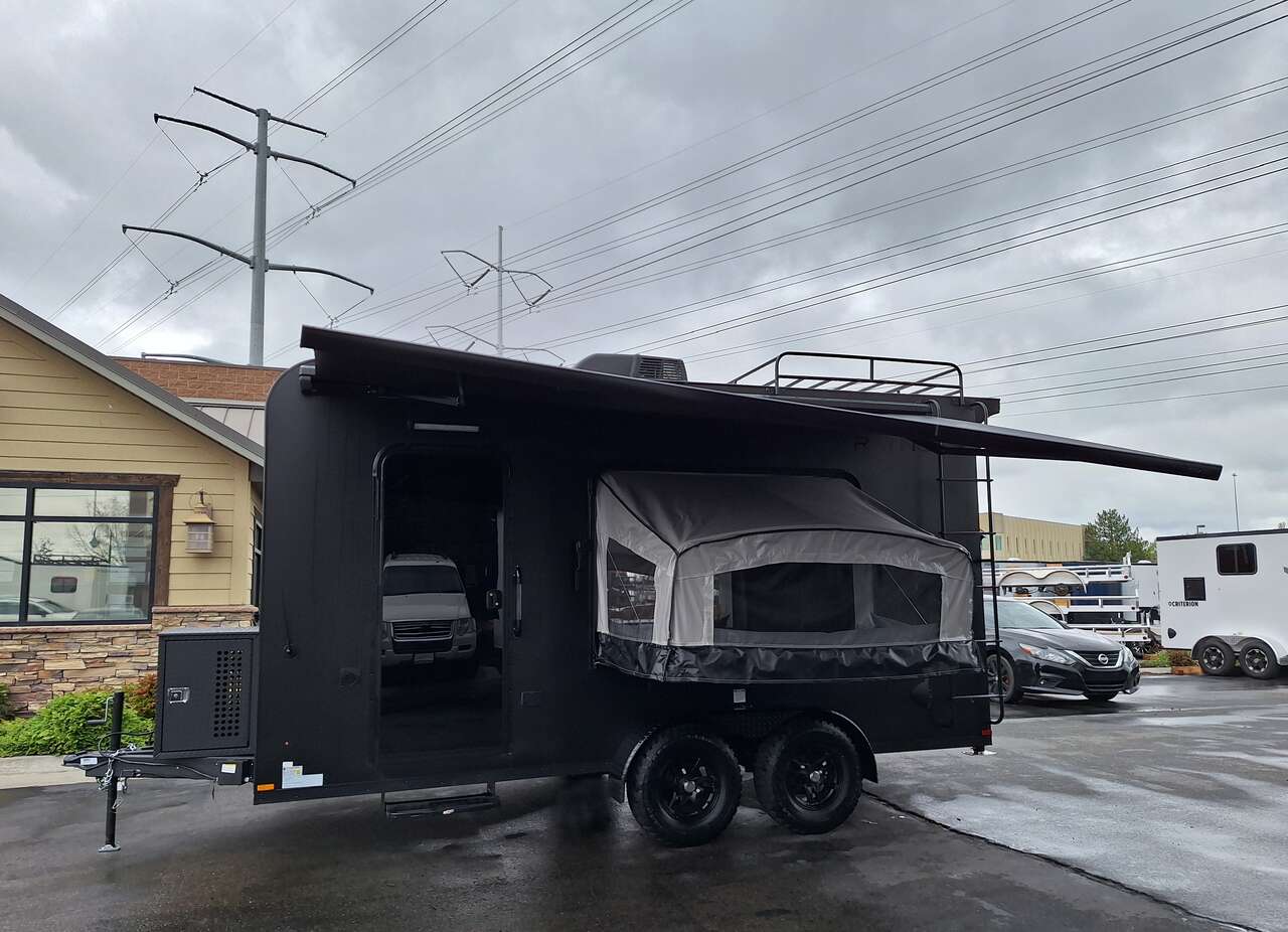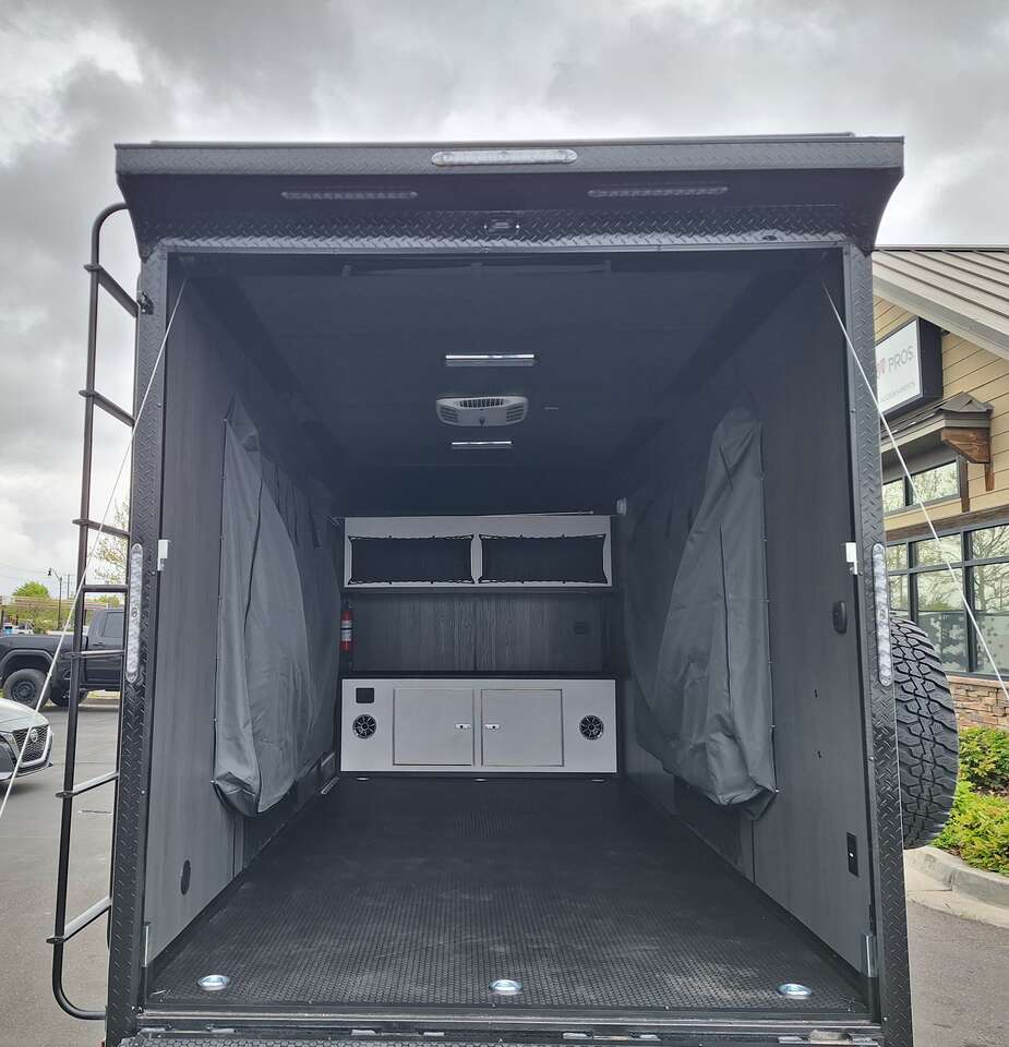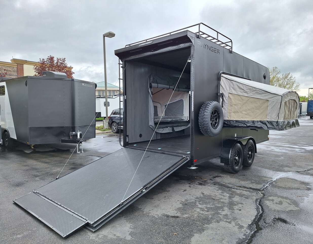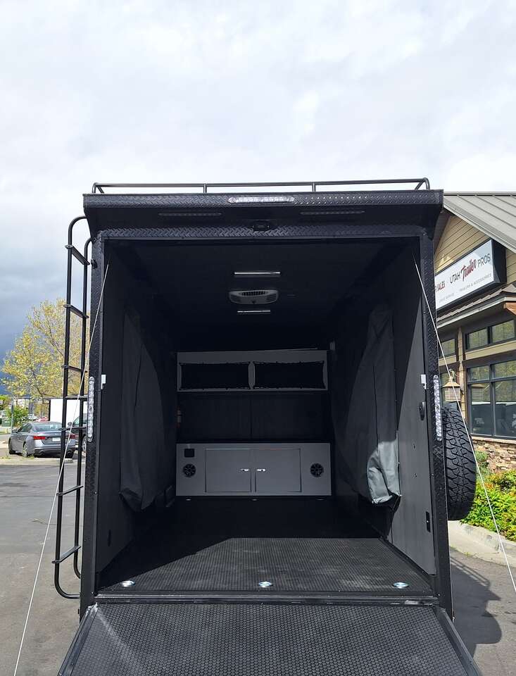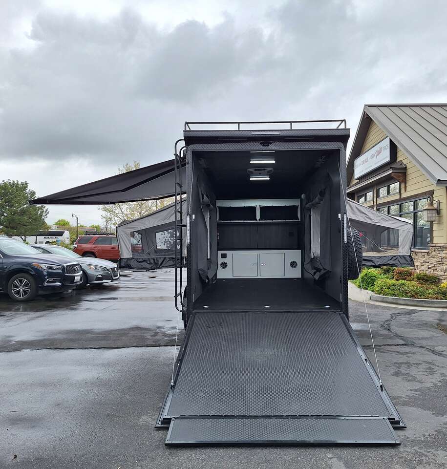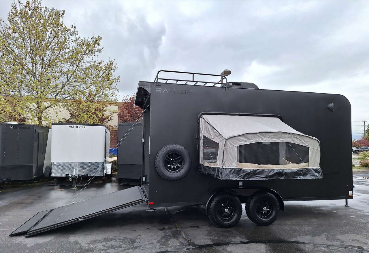 LIMITED TIME $228 A MONTH WITH ZERO DOWN WITH OUR SPECIAL LOCAL CREDIT UNION PARTNER!!! NO PRE-PAYMENT PENALTIES!!! NEW 2025 MODEL!!! WILL FIT ANY STOCK SIDE BY SIDE UTV!!! RAYNGER PREMIUM OFF ROAD TOY HAULER CAMPER!!! 18 INCH GROUND CLEARANCE!!! OFF ROAD TIRES!!! FULLY INSULATED!!! HEATING AND A/C!!! WET SOUND STEREO!!! TWO FOLD OUT/POP OUT TENTS WITH MATTRESS!!! CARGO BASKET!!! LED LIT AWNING!!! 84 Inch Rear Entry Height/87 INCH INTERIOR HEIGHT!!! 77 Inch Rear Entry Width!!! Aluminum Ventilated Locking Generator Box!!! UPGRADED TORSION AXLES!!! 14.2 Foot Long Garage Space!!! And Much MUCH MORE!!! Check out our Specs!!! Also available in 18 foot models. 18 Foot Models can have 3 Fold Out Beds/Pop Out Tents. 16 Foot and 18 Foot Models will fit ANY stock 4 Seater Side by Side • 6” I Beam Frame• Flat Top Design• Flat Front Design• Wall Posts 16” on Center• Cross Members 16” on Center• Roof Bows 16” on Center• Rust Inhibiting Z-Tech Protection on Chassis• Ameraguard on Tongue• Ameraguard on Rear Bumper• Ameraguard Around All Door Openings and Stepwell• Ameraguard Around Edges of Ramp Door• 3500 LB Spring Axles• 2-5/16” Coupler• One-Piece Aluminum Roof• ST235/75R15 Aluminum Wheels with Chrome Center Caps• 2000# Ramp Door with Eberhard Latch• 30” Tempered Glass RV Door with Screen Door• .030 Exterior Metal with Screwless Sides• 24” Black Stoneguard• 3” Black Bottom Trim• Sand Pad• Black Door Hold• 2.7mm Charcoal Textured Vinyl Ceiling • 9mm Charcoal Textured Vinyl Walls• 3/4” Engineered Wood Floor with Rubber Coin Overlay• (6) 1200 LB Floor D rings Installed with Backer Plates• LED Clearance Lights and Tail Lights• LED Back-up Lights• No Show Wheel Box• Spoiler with Toggle Switch• RV Step• 7’ Interior• (2) 17” Chrome Base Lights with Switch• (1) Black 17” Spot Light with Switch• (1) 30 Amp Panel with Marine Plug• A/C Unit with Heat Strip• (3) Interior Recepts• (1) Exterior Recept• 12V Battery and Charge Line• Prep for Backup Camera• Wet Sounds System• (3) Blue Interior Cabinet Lights• (1) 6’ Section of Flex Lights• Black ATP Rear Header and Hoop• Black ATP Fenders• Insulated Walls & Ceiling• Base Cabinets• Overhead Cabinets with Netting Over Compartments• Pop Out Tent• Black ATP Storage/Generator Box Mounted On Tongue SW091693