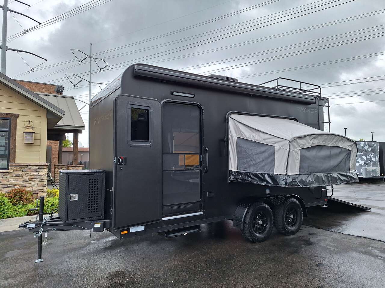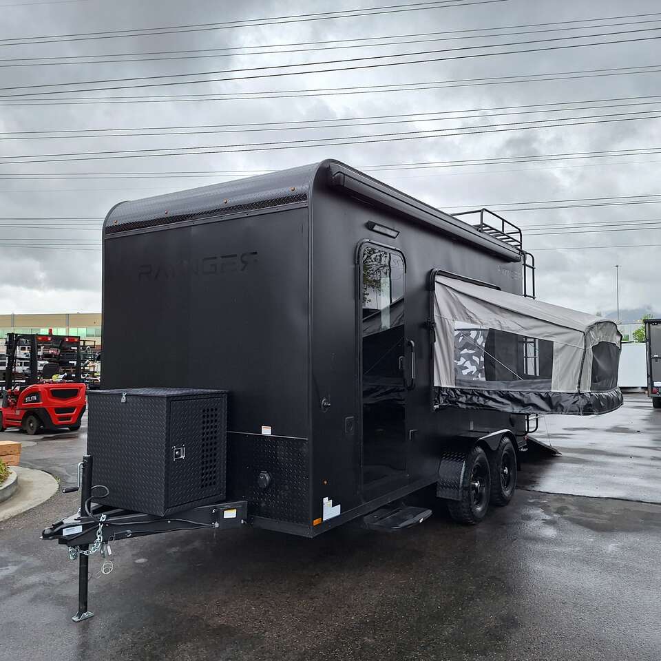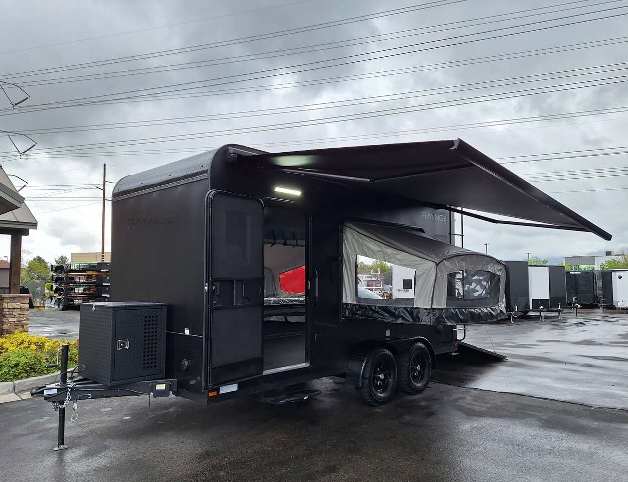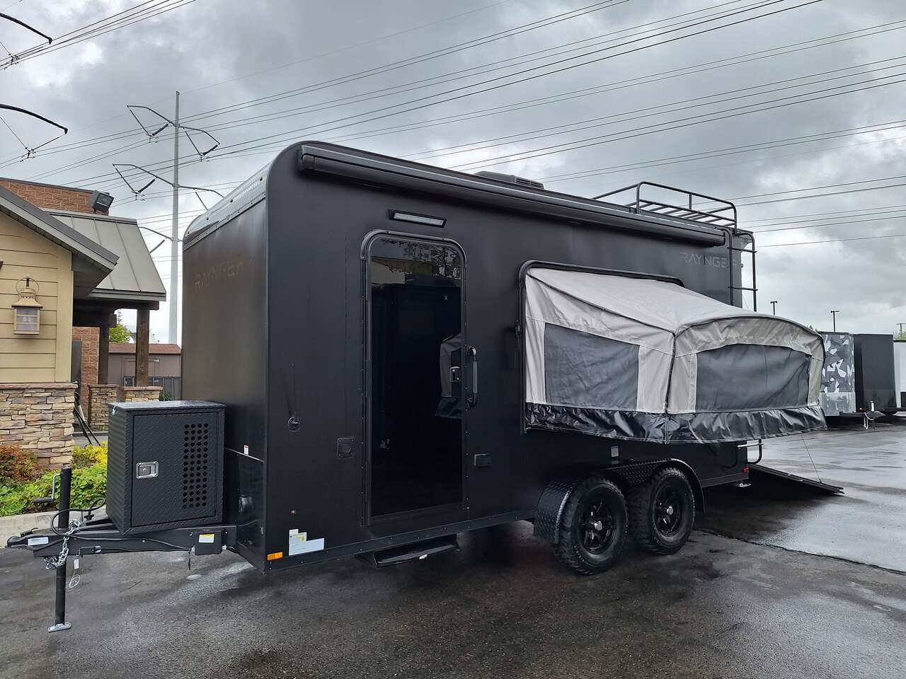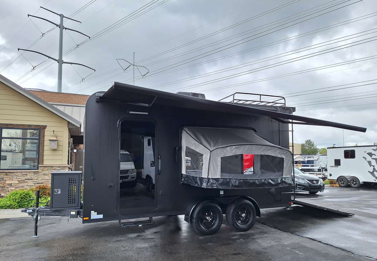 LIMITED TIME $228 A MONTH WITH ZERO DOWN WITH OUR SPECIAL LOCAL CREDIT UNION PARTNER!!! NO PRE-PAYMENT PENALTIES!!! NEW 2025 MODEL!!! WILL FIT ANY STOCK SIDE BY SIDE UTV!!! RAYNGER PREMIUM OFF ROAD TOY HAULER CAMPER!!! 18 INCH GROUND CLEARANCE!!! OFF ROAD TIRES!!! FULLY INSULATED!!! HEATING AND A/C!!! WET SOUND STEREO!!! TWO FOLD OUT/POP OUT TENTS WITH MATTRESS!!! CARGO BASKET!!! LED LIT AWNING!!! 84 Inch Rear Entry Height/87 INCH INTERIOR HEIGHT!!! 77 Inch Rear Entry Width!!! Aluminum Ventilated Locking Generator Box!!! UPGRADED TORSION AXLES!!! 14.2 Foot Long Garage Space!!! And Much MUCH MORE!!! Check out our Specs!!! Also available in 18 foot models. 18 Foot Models can have 3 Fold Out Beds/Pop Out Tents. 16 Foot and 18 Foot Models will fit ANY stock 4 Seater Side by Side • 6” I Beam Frame• Flat Top Design• Flat Front Design• Wall Posts 16” on Center• Cross Members 16” on Center• Roof Bows 16” on Center• Rust Inhibiting Z-Tech Protection on Chassis• Ameraguard on Tongue• Ameraguard on Rear Bumper• Ameraguard Around All Door Openings and Stepwell• Ameraguard Around Edges of Ramp Door• 3500 LB Spring Axles• 2-5/16” Coupler• One-Piece Aluminum Roof• ST235/75R15 Aluminum Wheels with Chrome Center Caps• 2000# Ramp Door with Eberhard Latch• 30” Tempered Glass RV Door with Screen Door• .030 Exterior Metal with Screwless Sides• 24” Black Stoneguard• 3” Black Bottom Trim• Sand Pad• Black Door Hold• 2.7mm Charcoal Textured Vinyl Ceiling • 9mm Charcoal Textured Vinyl Walls• 3/4” Engineered Wood Floor with Rubber Coin Overlay• (6) 1200 LB Floor D rings Installed with Backer Plates• LED Clearance Lights and Tail Lights• LED Back-up Lights• No Show Wheel Box• Spoiler with Toggle Switch• RV Step• 7’ Interior• (2) 17” Chrome Base Lights with Switch• (1) Black 17” Spot Light with Switch• (1) 30 Amp Panel with Marine Plug• A/C Unit with Heat Strip• (3) Interior Recepts• (1) Exterior Recept• 12V Battery and Charge Line• Prep for Backup Camera• Wet Sounds System• (3) Blue Interior Cabinet Lights• (1) 6’ Section of Flex Lights• Black ATP Rear Header and Hoop• Black ATP Fenders• Insulated Walls & Ceiling• Base Cabinets• Overhead Cabinets with Netting Over Compartments• Pop Out Tent• Black ATP Storage/Generator Box Mounted On Tongue SW091693